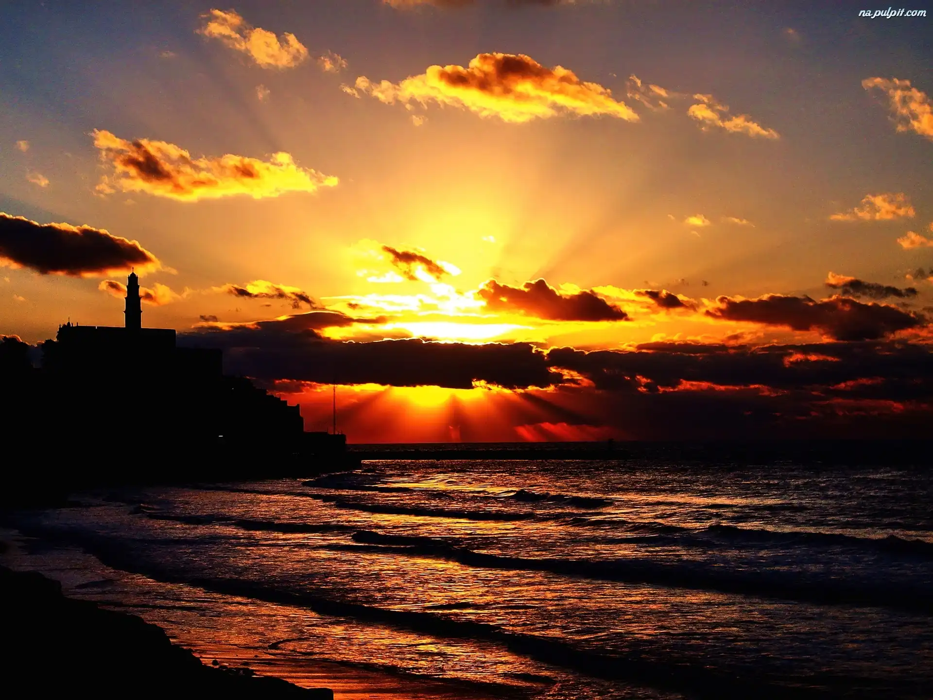 Promienie, Chmury, Fale, Morze, Słońce Na Pulpit