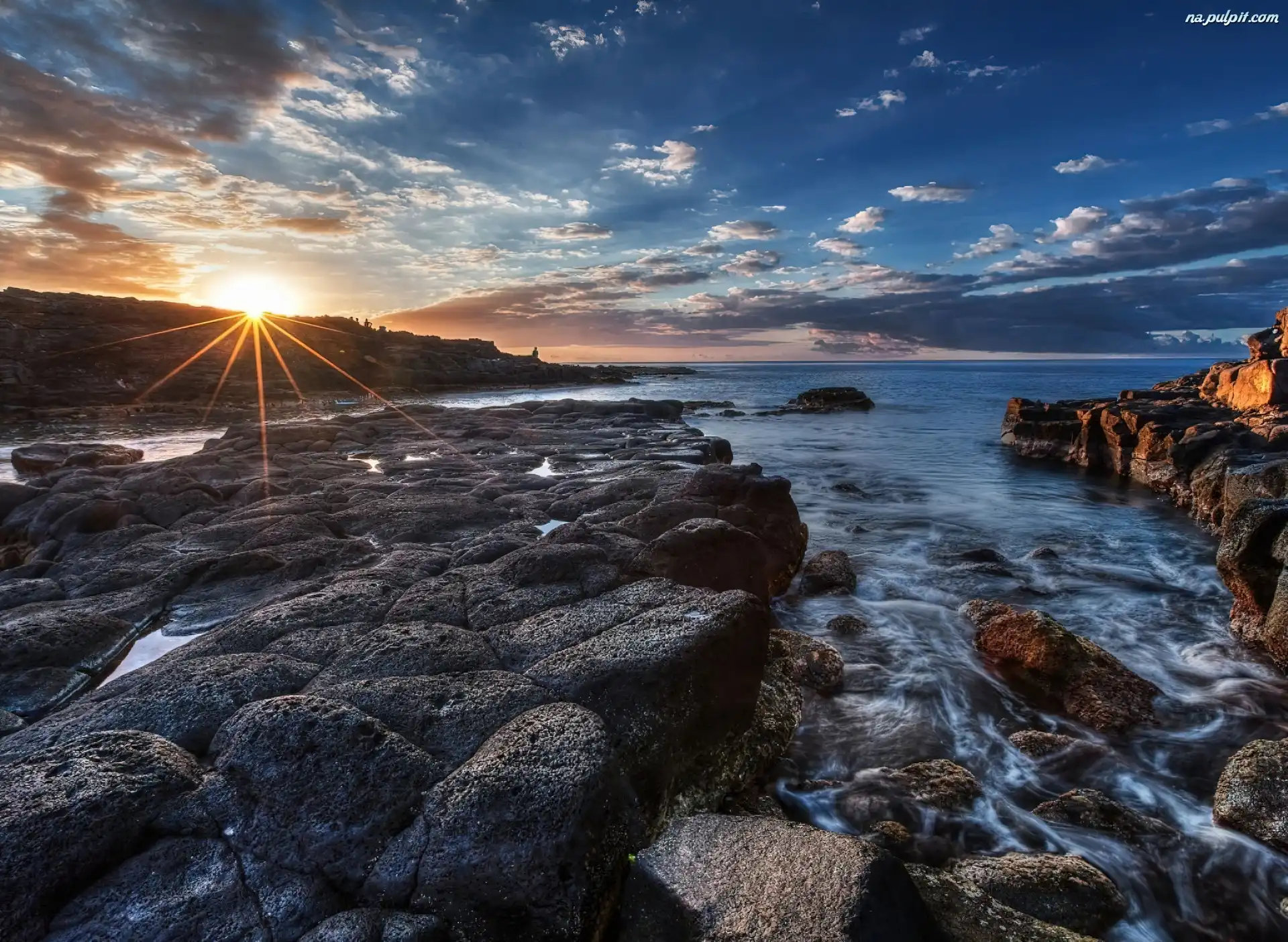 Promienie, Zachód, Kamienie, Morze, Słońca Na Pulpit