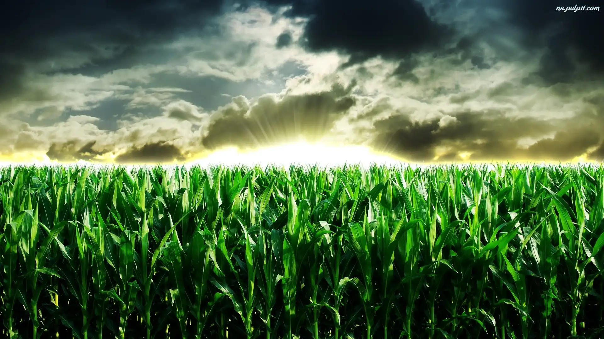 Promienie Słońca, Kukurydzy, Pole, Chmury Na Pulpit