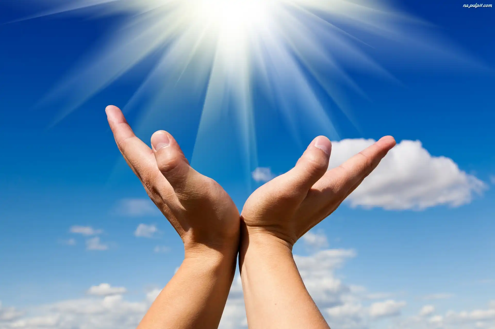 Promienie, Energia, Ręce, Niebo Na Pulpit
