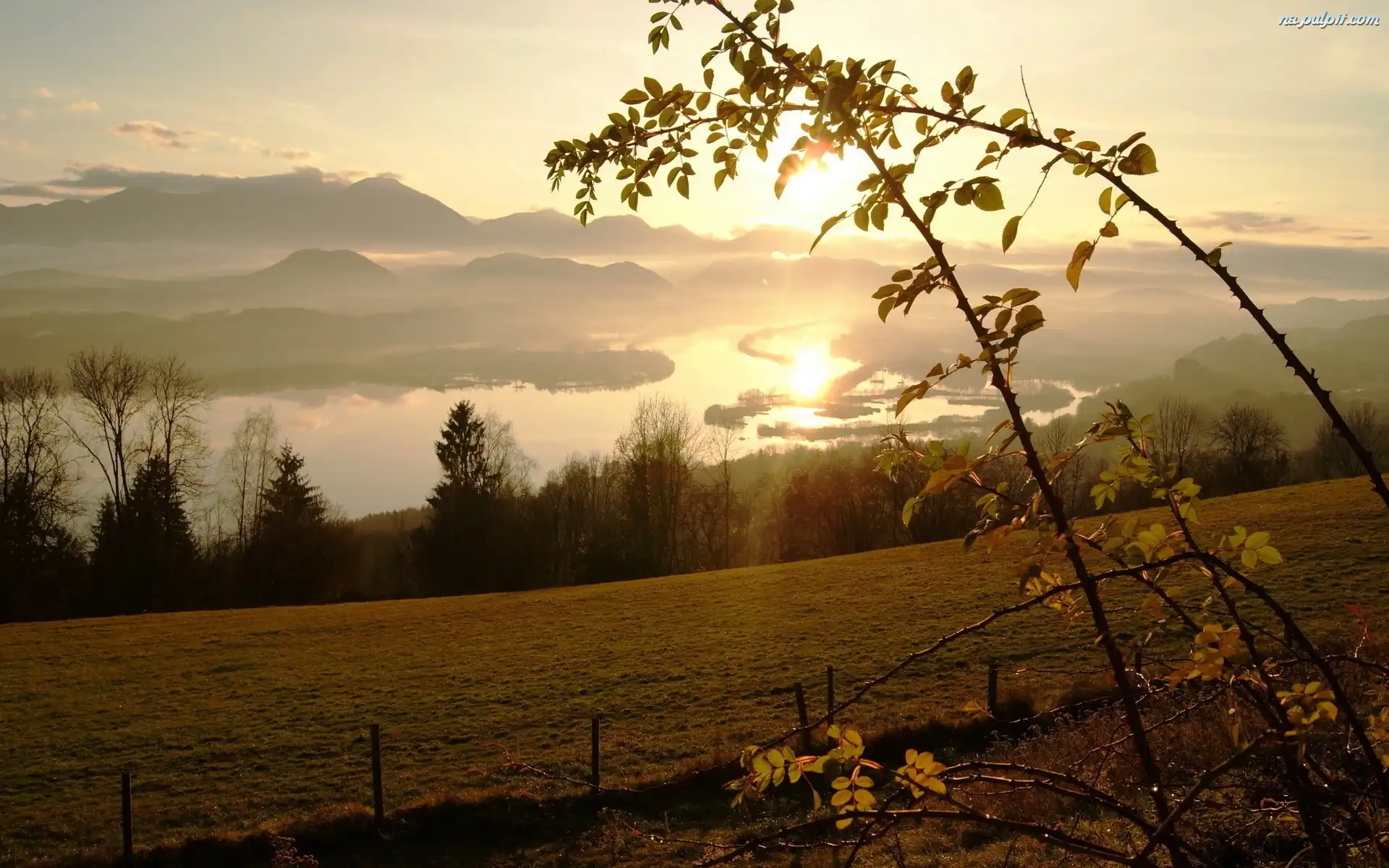 Promienie Słońca, Pola, Rzeka, Góry Na Pulpit
