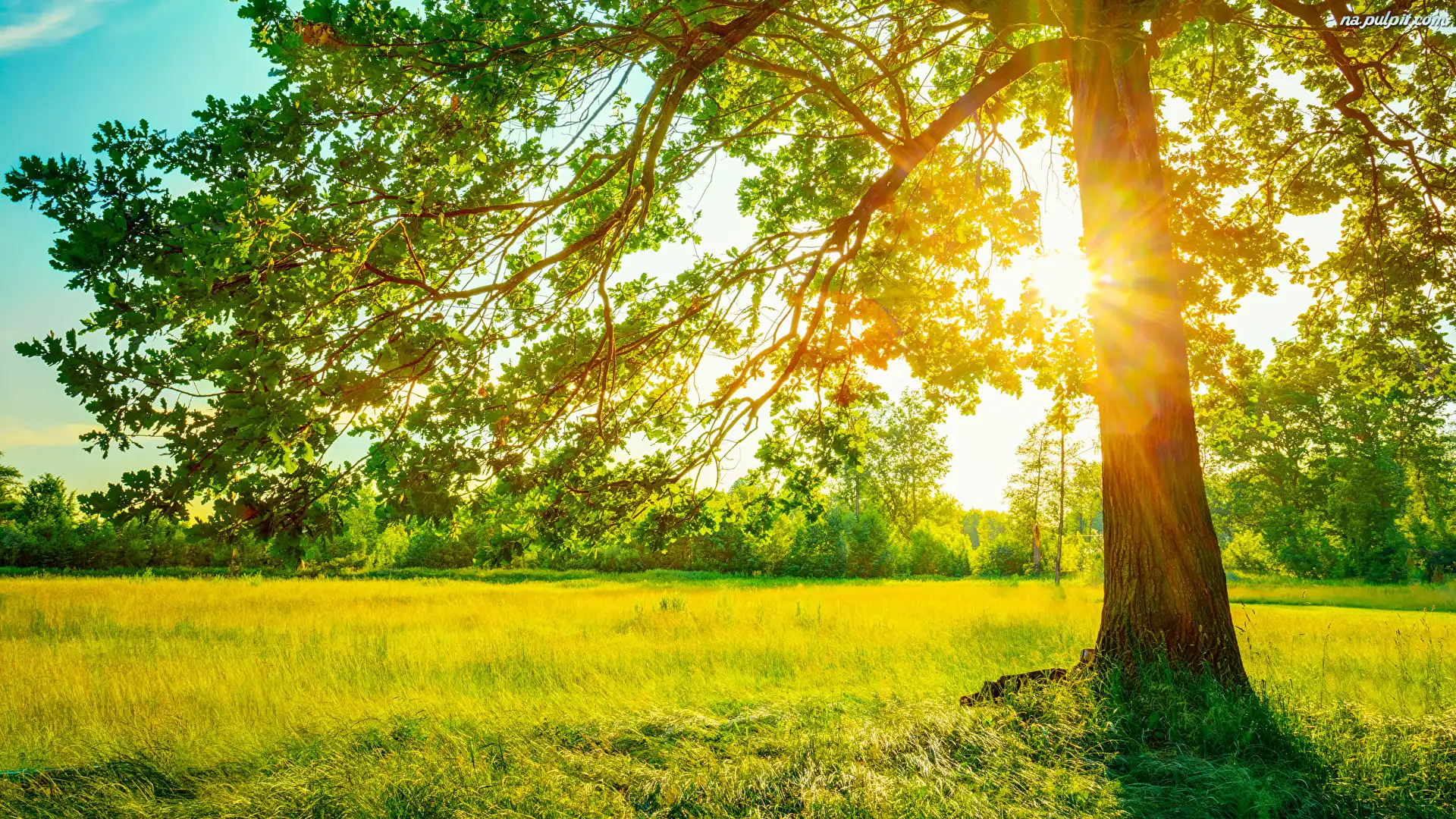 Promienie słoneczne, Drzewo, Trawa, Dąb Na Pulpit