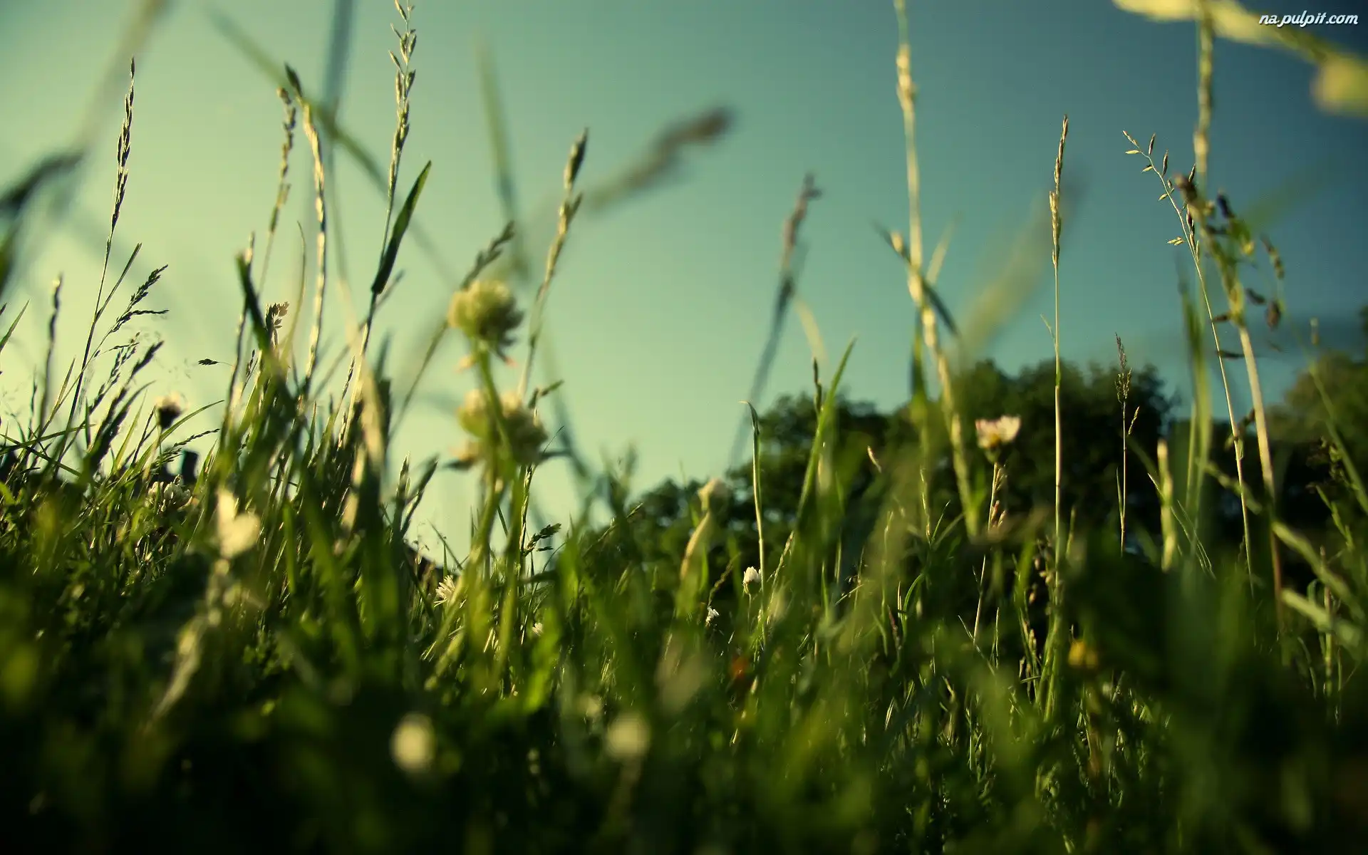 Promienie, Niebo, Trawa, Słońce Na Pulpit