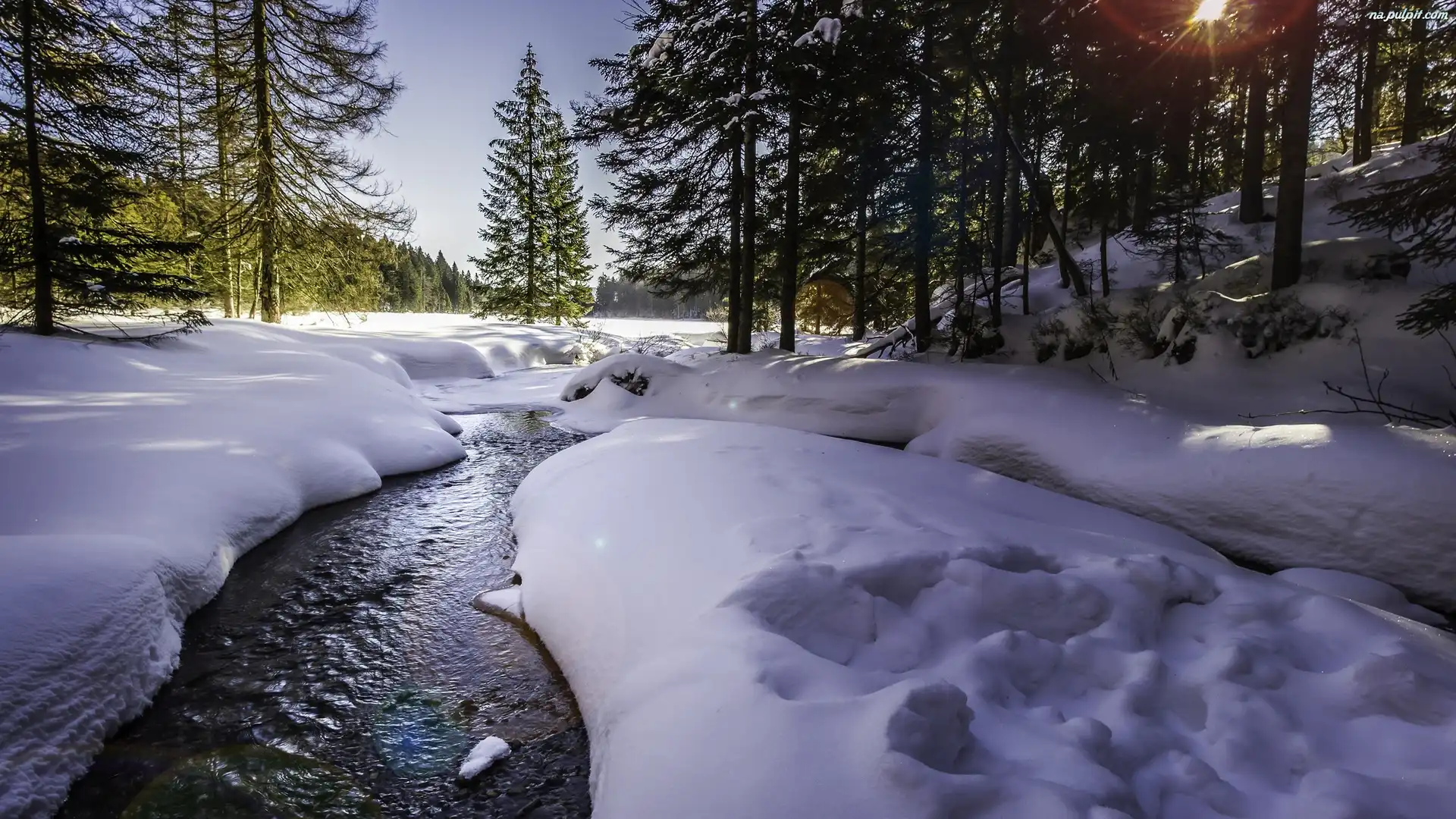 Promienie Słońca, Rzeczka, Zima, Las Na Pulpit