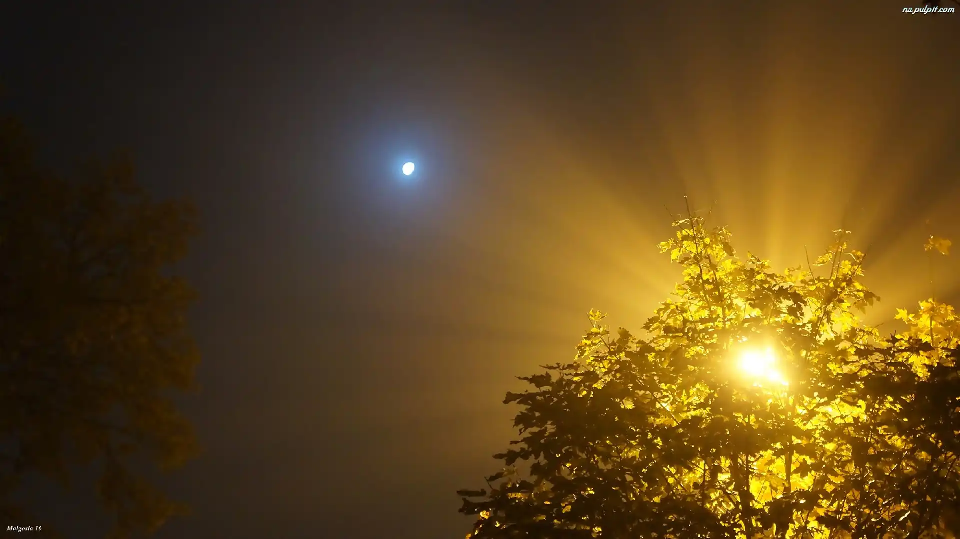 Przebijające Światło, Drzewo, Noc Na Pulpit
