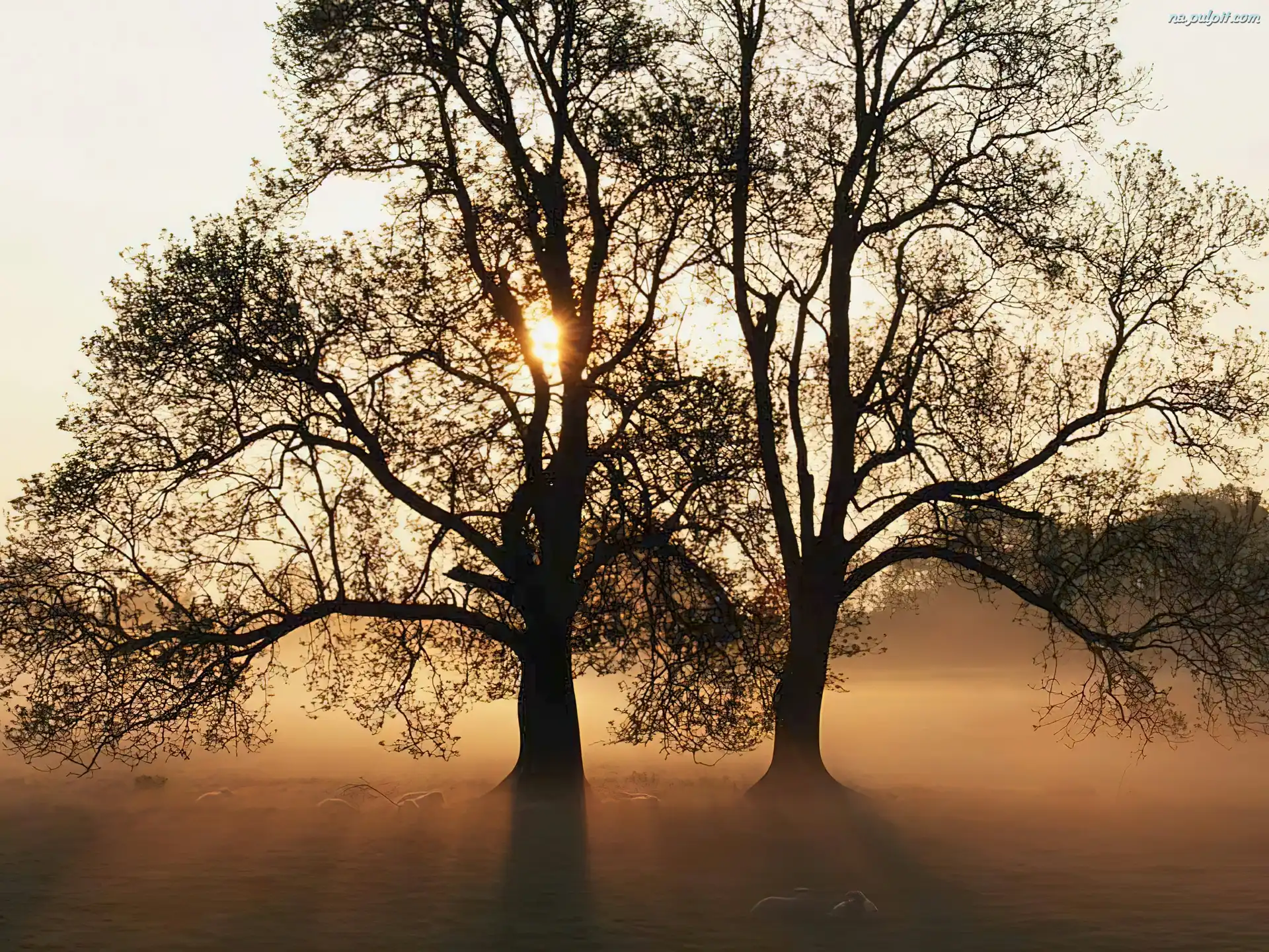 Przebijające Światło, Dwa, Drzewa Na Pulpit