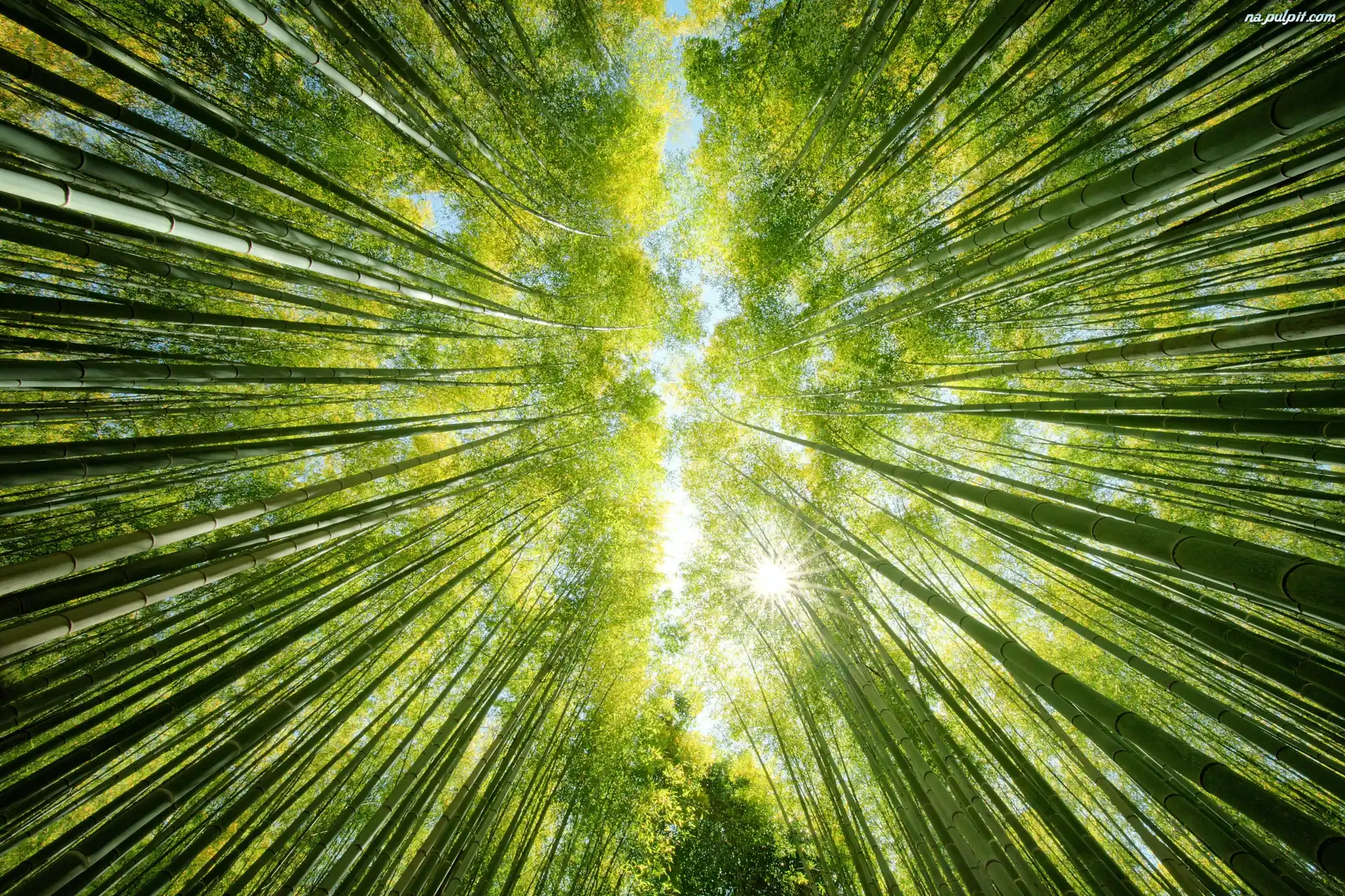 Przebijające światło, Drzewa, Las, Bambusy