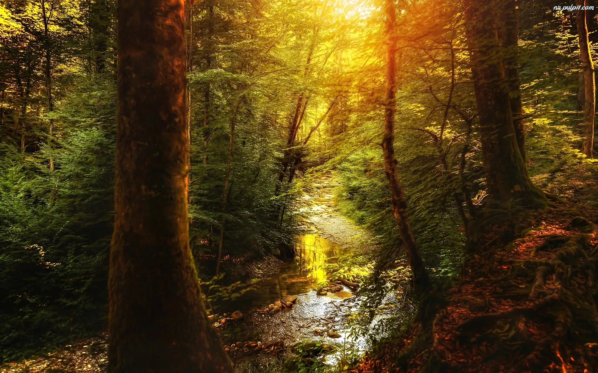 Przebijające Słońce, Las, Strumyk Na Pulpit