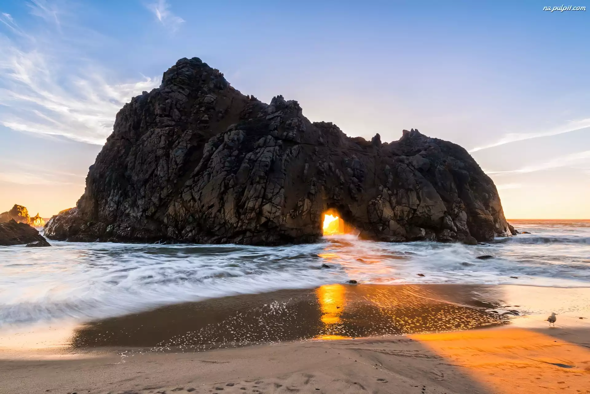 Przebijające Światło, Plaża, Morze, Skała Na Pulpit