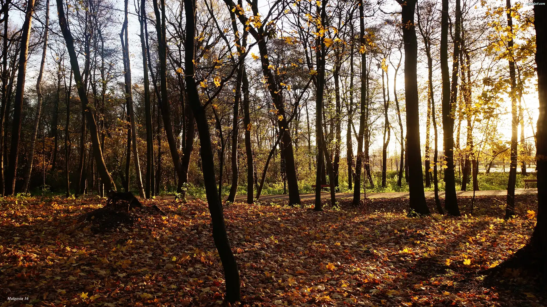Przebijające Światło, Drzewa, Park, Jesień Na Pulpit