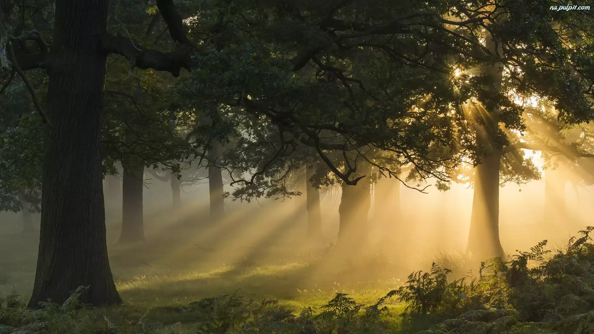 Przebijające Światło, Drzewa, Las, Promienie słońca Na Pulpit