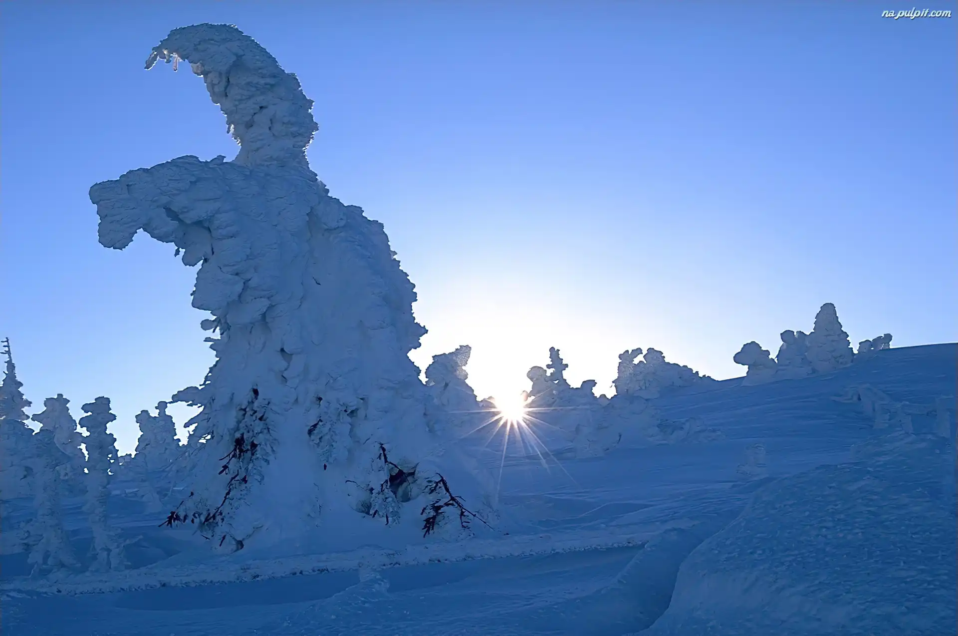 Przebijające Światło, Ośnieżone, Zima, Drzewa
