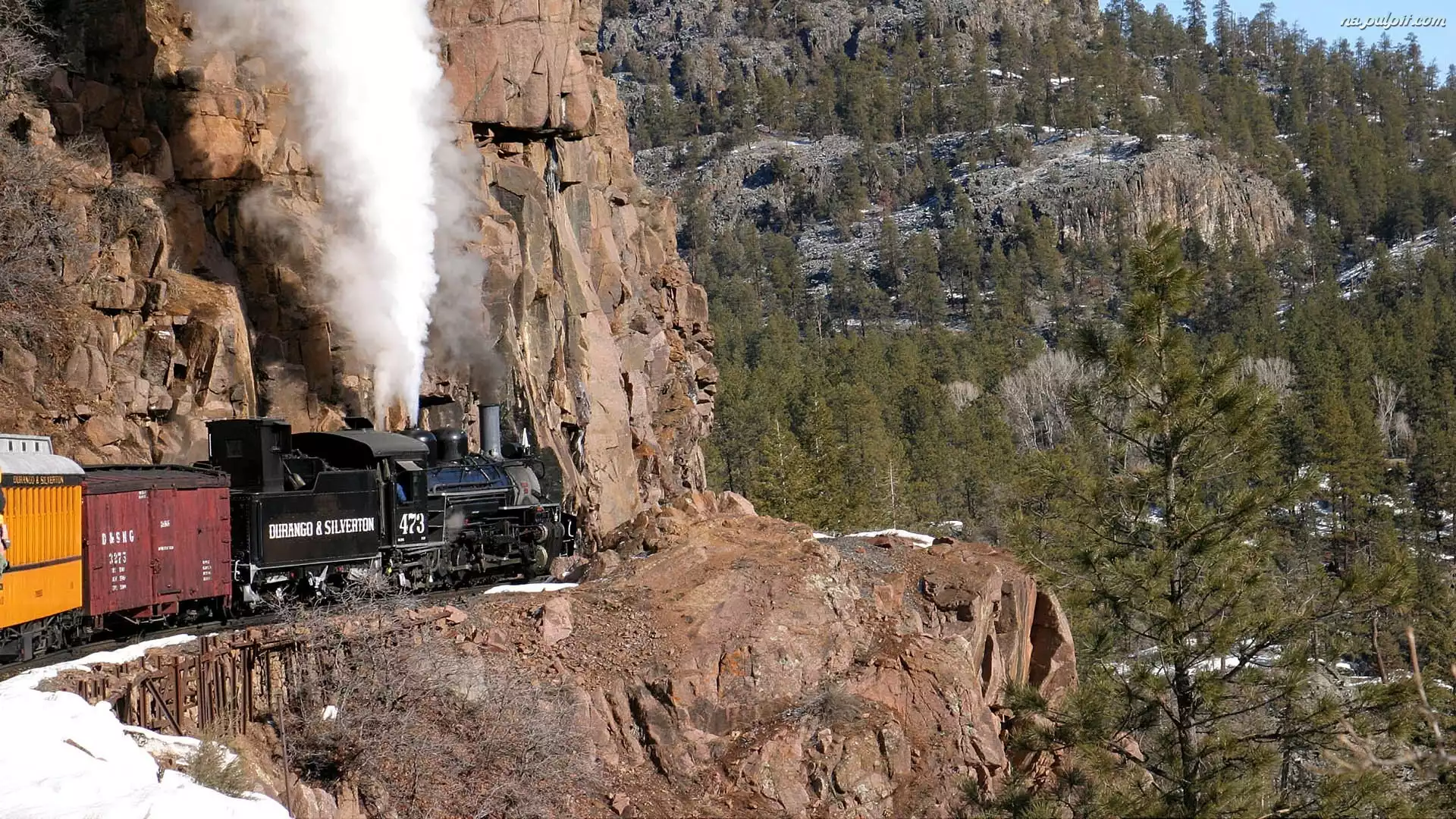 Przepaść, Drzewa, Pociąg, Skały Na Pulpit