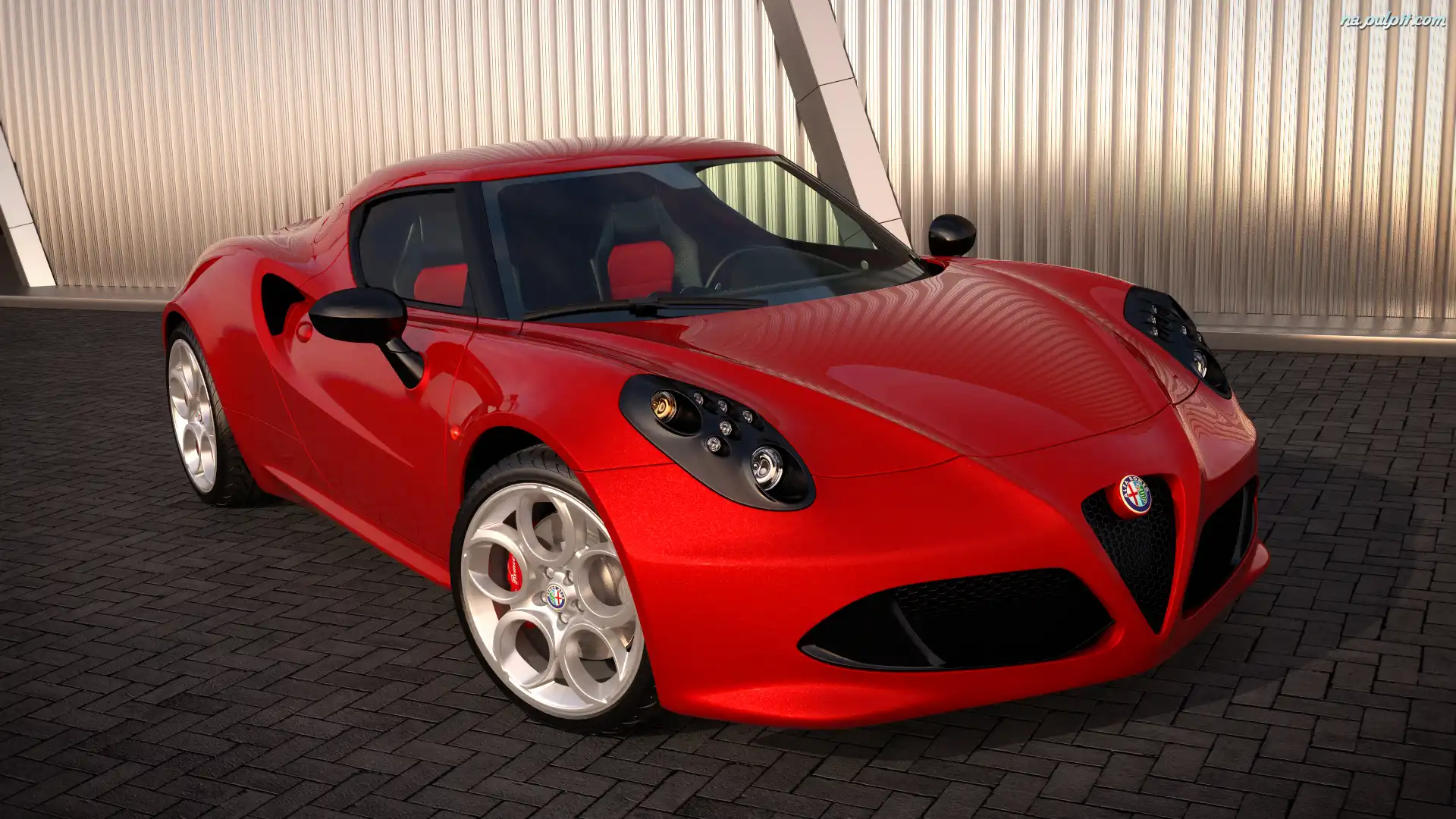 Przód, Czerwona, Alfa Romeo 4C Na Pulpit