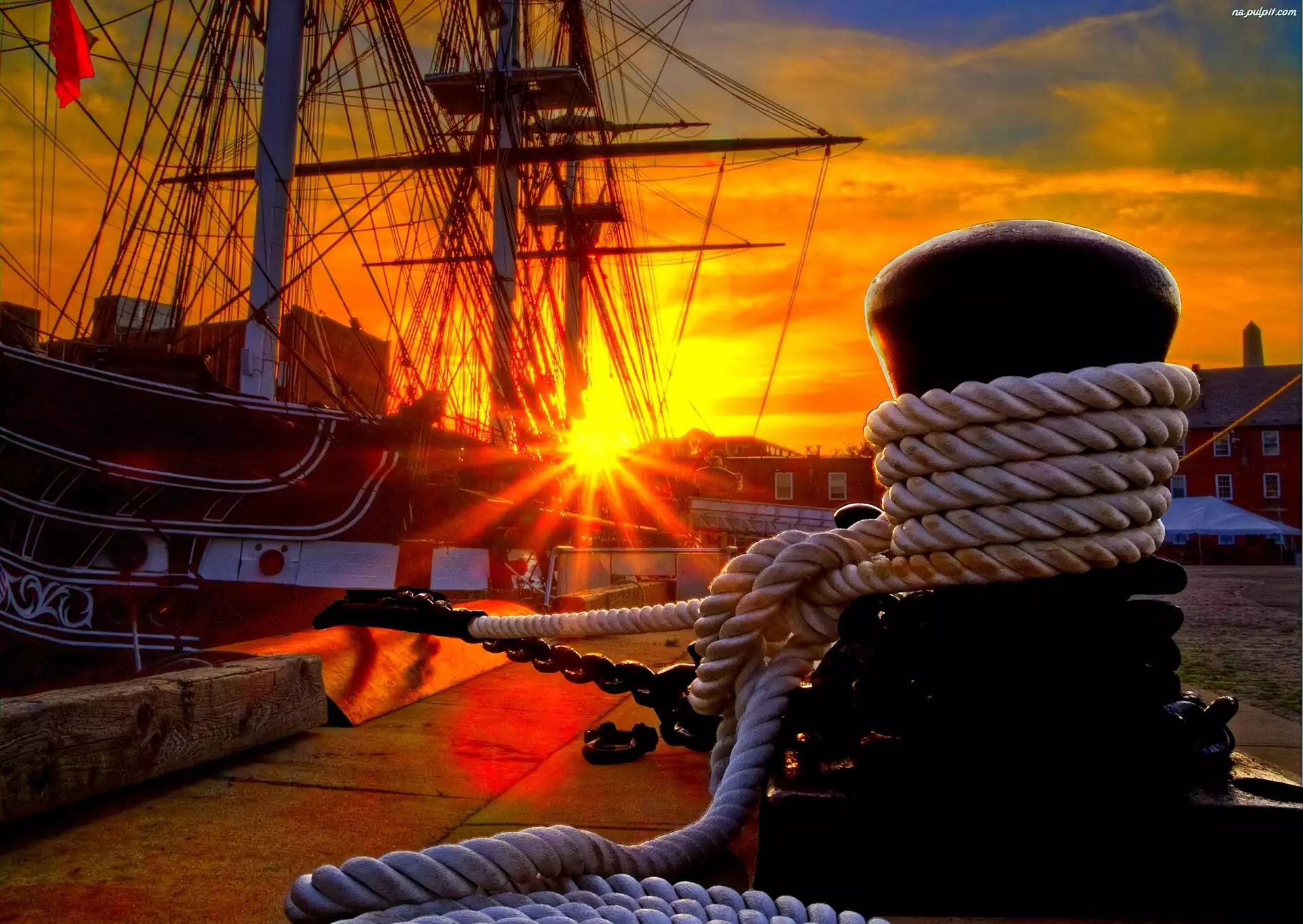 Łańcuch, Port, Przycumowany, Lina Na Pulpit