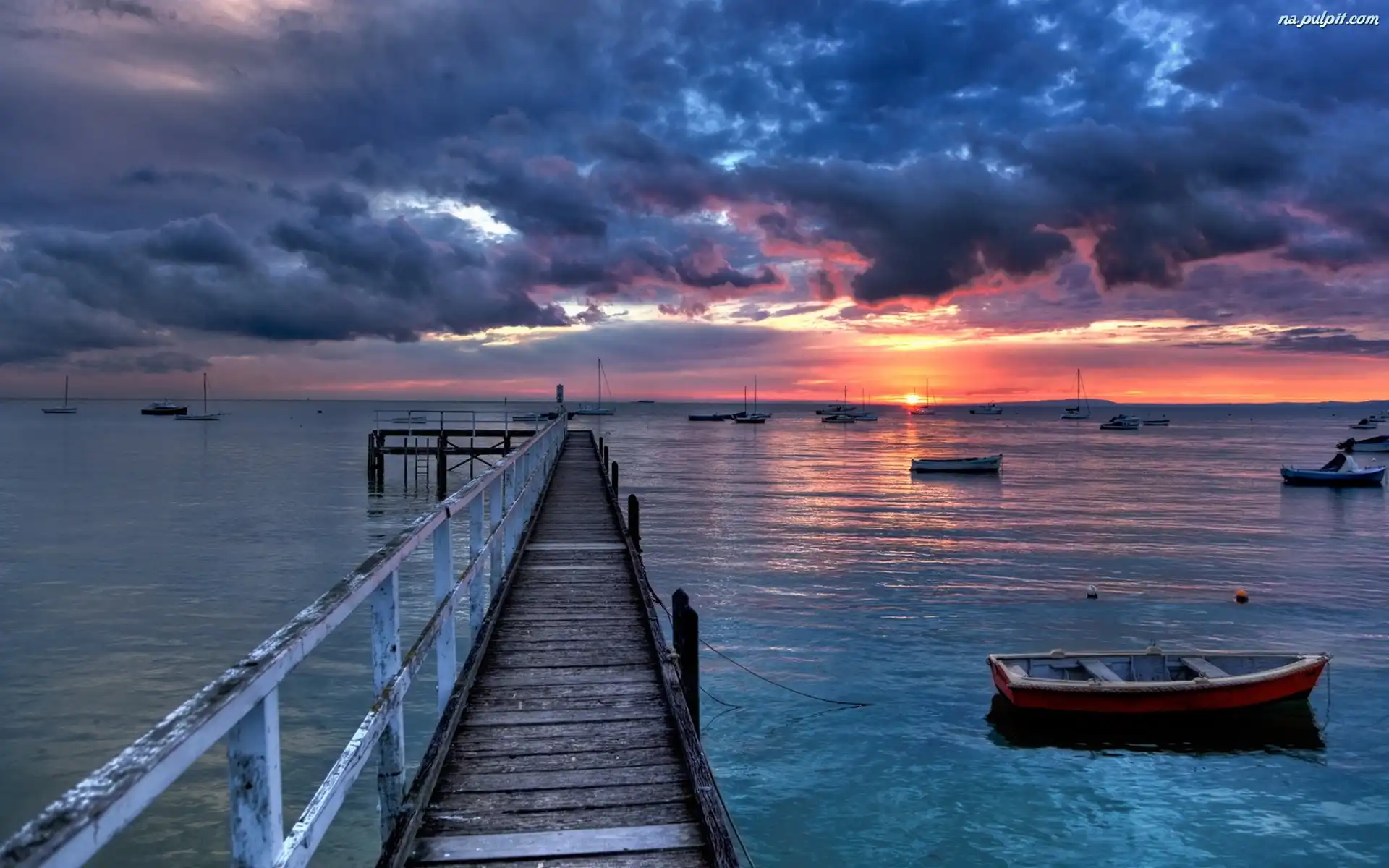 Przystań, Chmury, Słońca, Zachód, Łodzie Na Pulpit