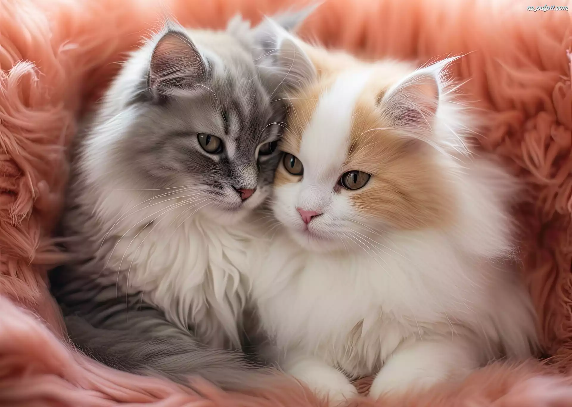 Dwa, Koty, Puszyste, Przytulone Na Pulpit