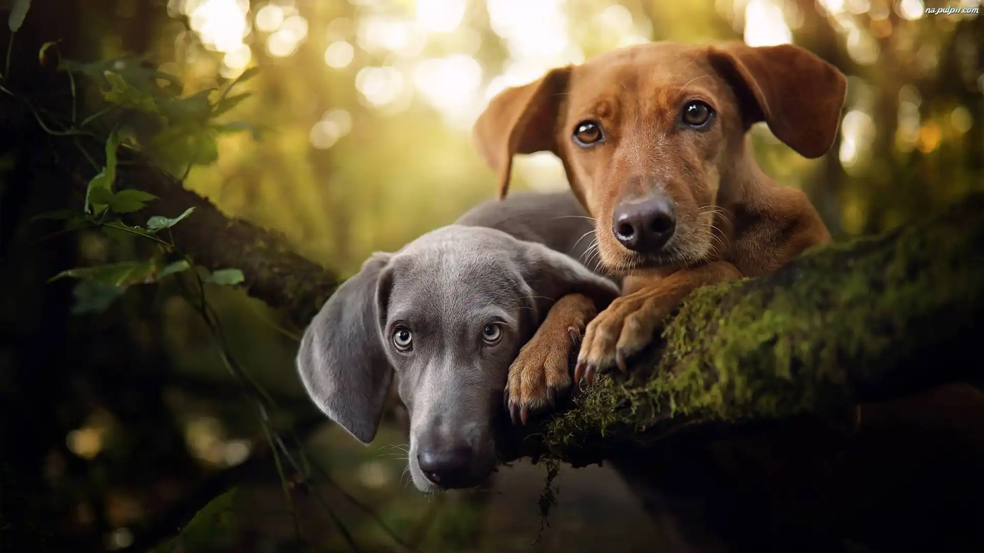Las, Psy, Konar, Nierasowy, Wyżeł weimarski, Dwa, Drzewo Na Pulpit