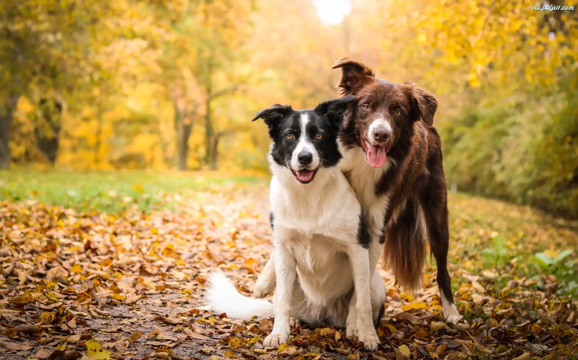 Krzewy, Psy, Drzewa, Polana, Border collie, Dwa, Liście Na Pulpit