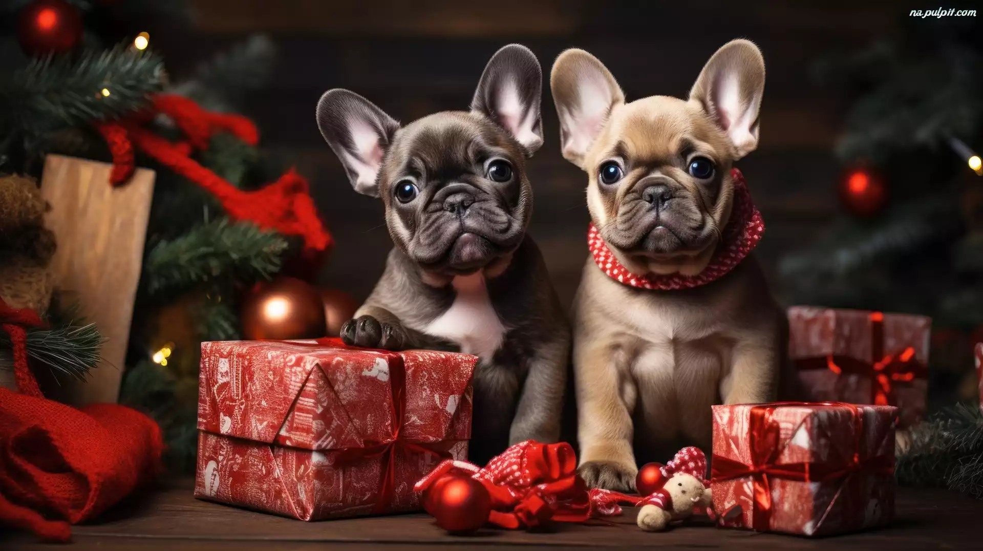 Buldogi francuskie, Prezenty, Psy, Szczeniaki, Dwa, Grafika Na Pulpit