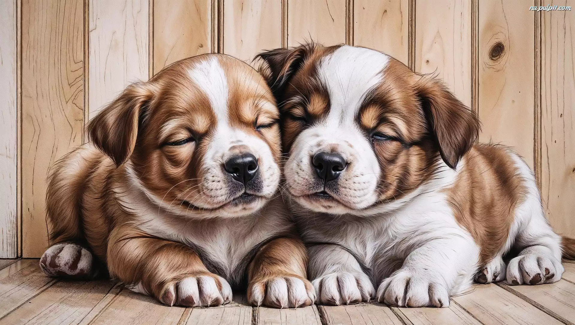 Grafika, Psy, Szczeniaki, Deski, Przytulone Na Pulpit