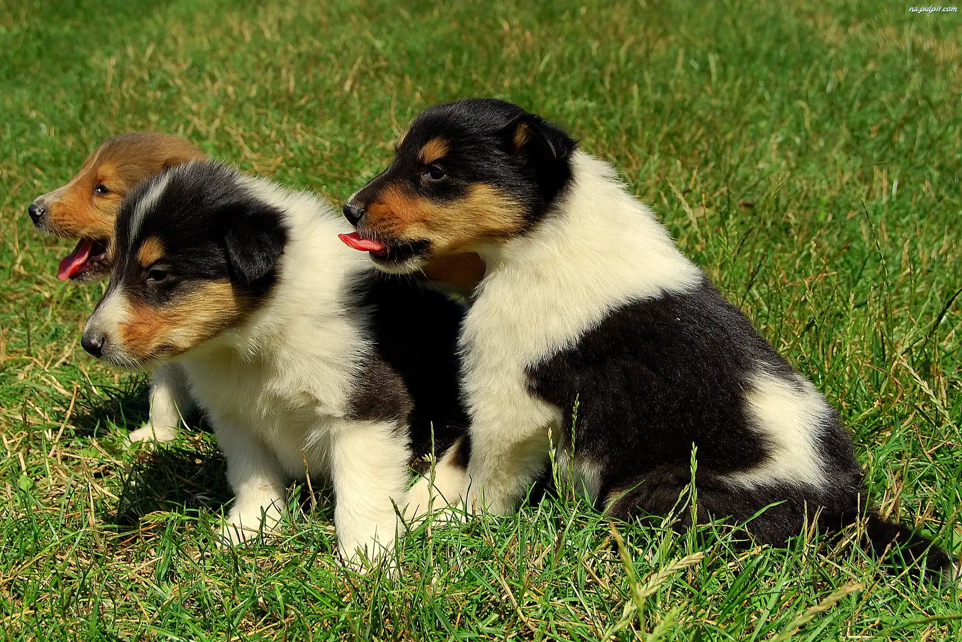 Owczarek szkocki, Szczeniaki, Psy, Trawa Na Pulpit