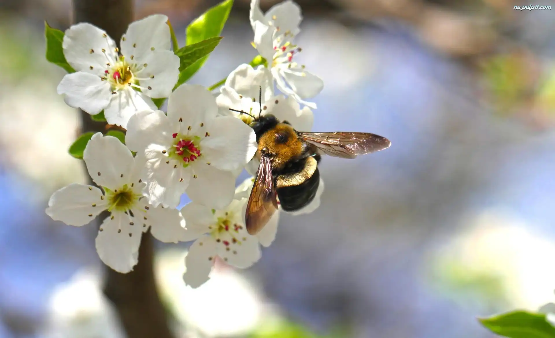 Pszczoła, Kwiaty, Białe, Wiśni Na Pulpit