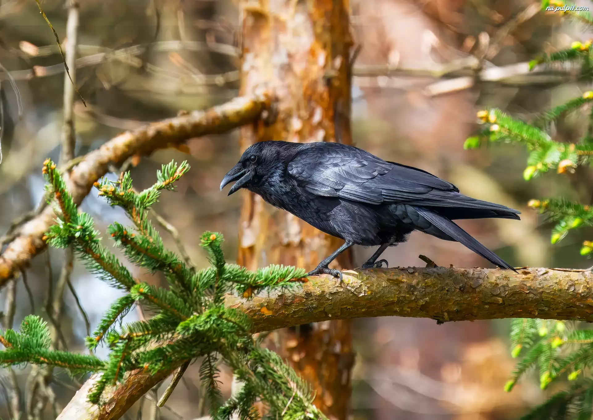 Drzewo, Ptak, Czarny, Gałęzie, Kruk