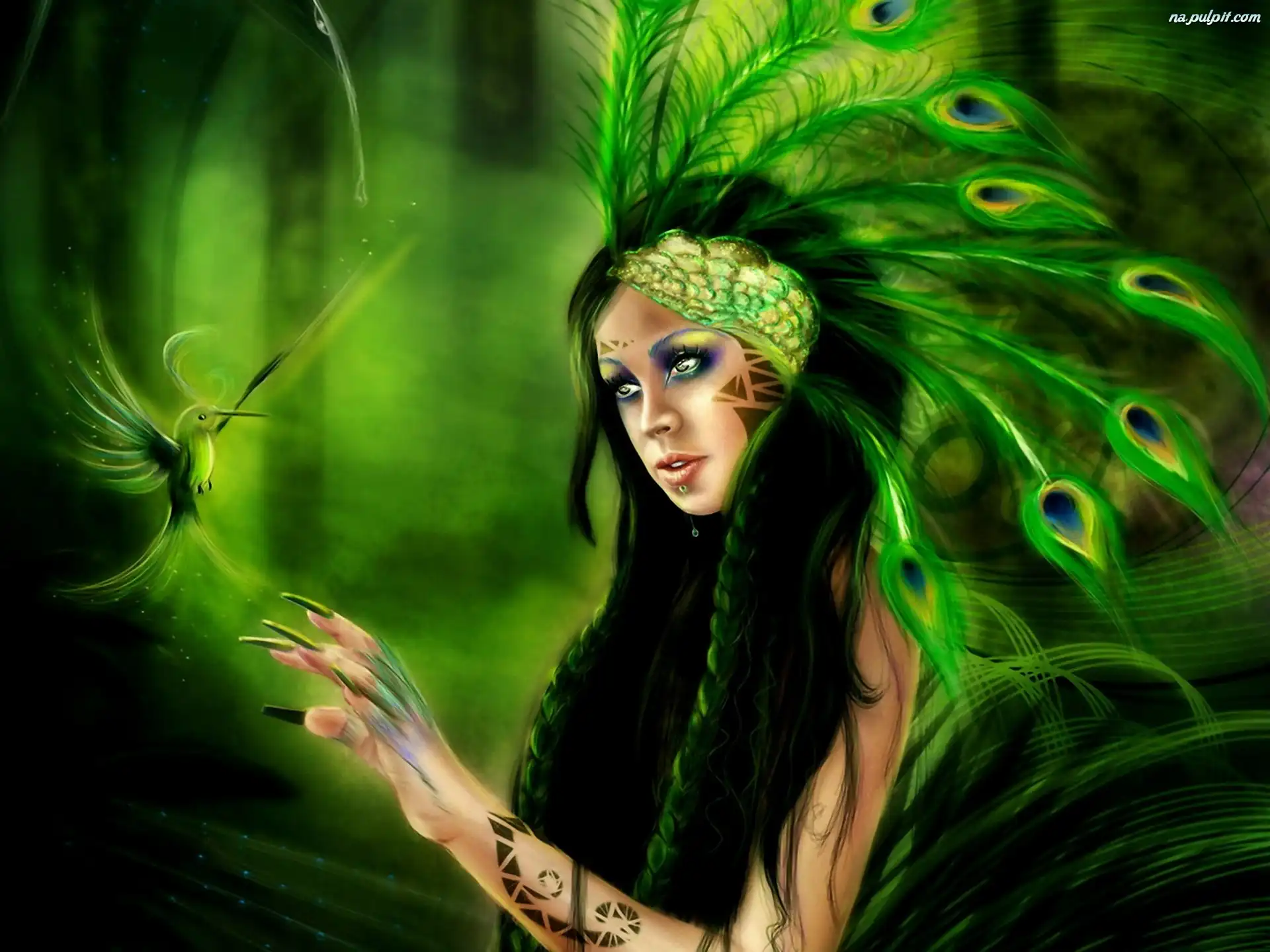 Ptak, Pawie, Dziewczyna, Pióra Na Pulpit