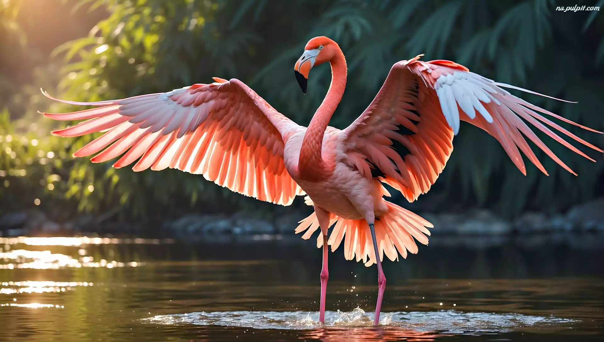 Skrzydła, Ptak, Flaming, Woda, Czerwonak Na Pulpit