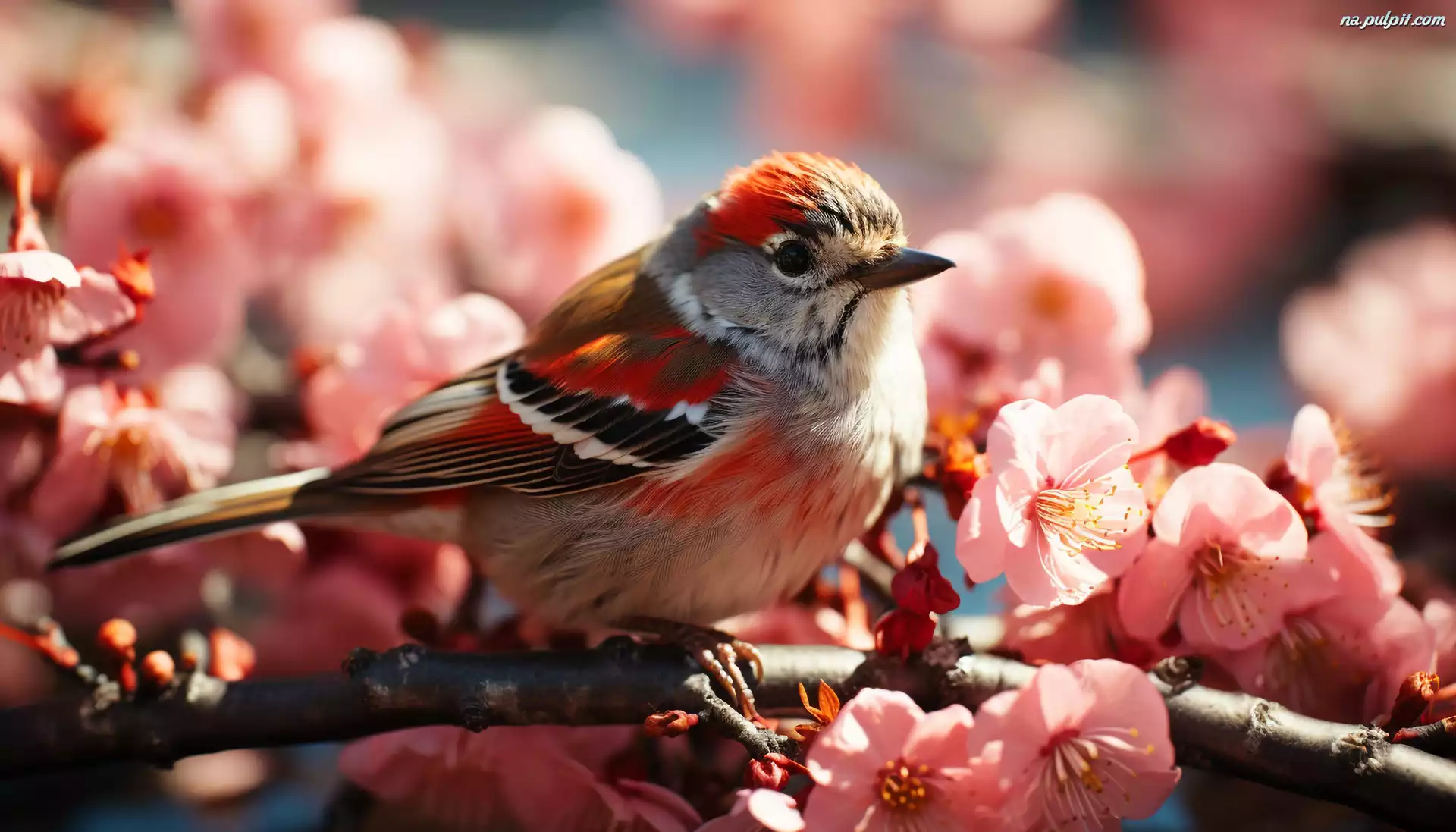 Wiosna, Ptak, Gałąź, Grafika, Kwiaty Na Pulpit