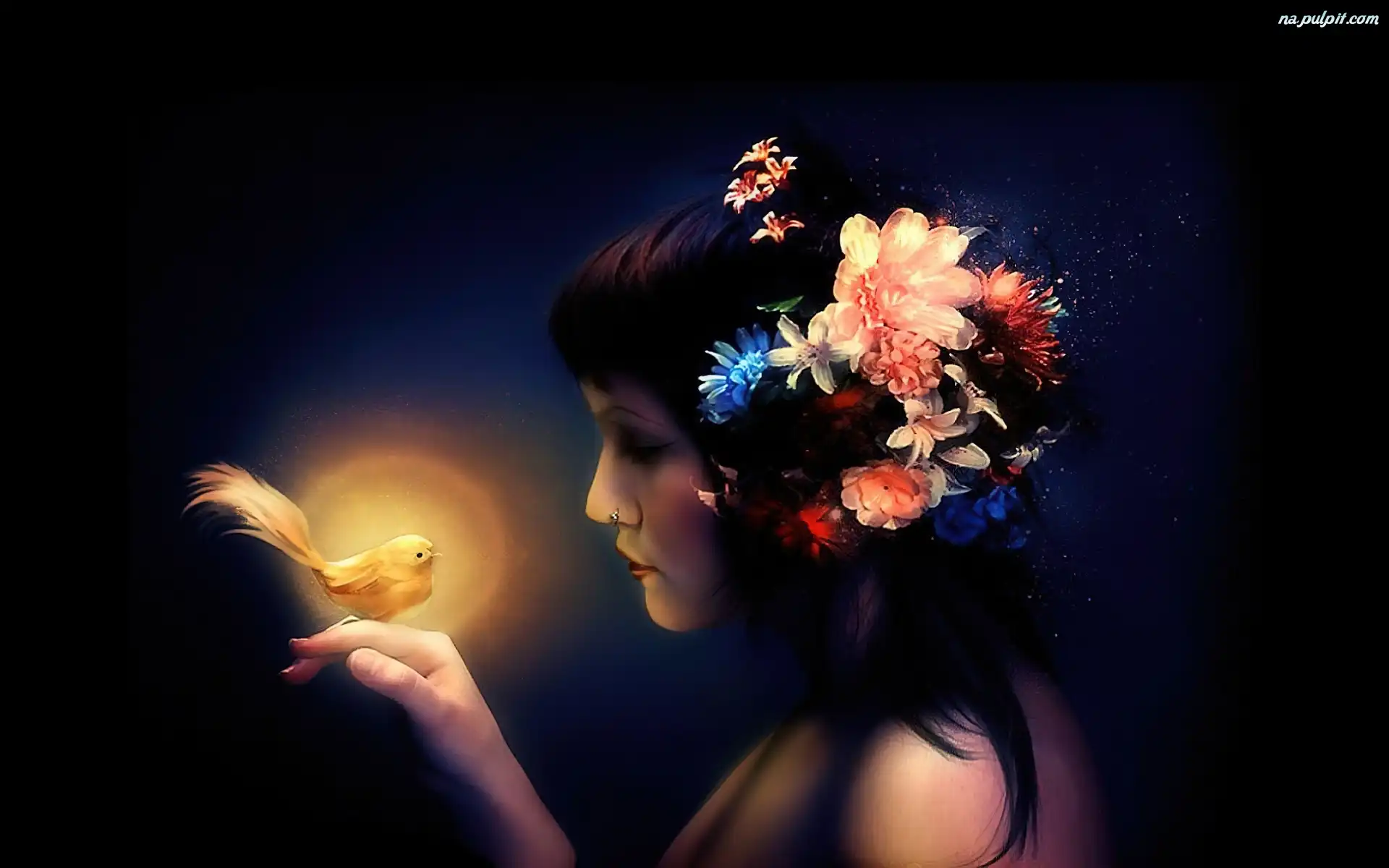 Ptak, Kwiaty, Kobieta, Włosy Na Pulpit