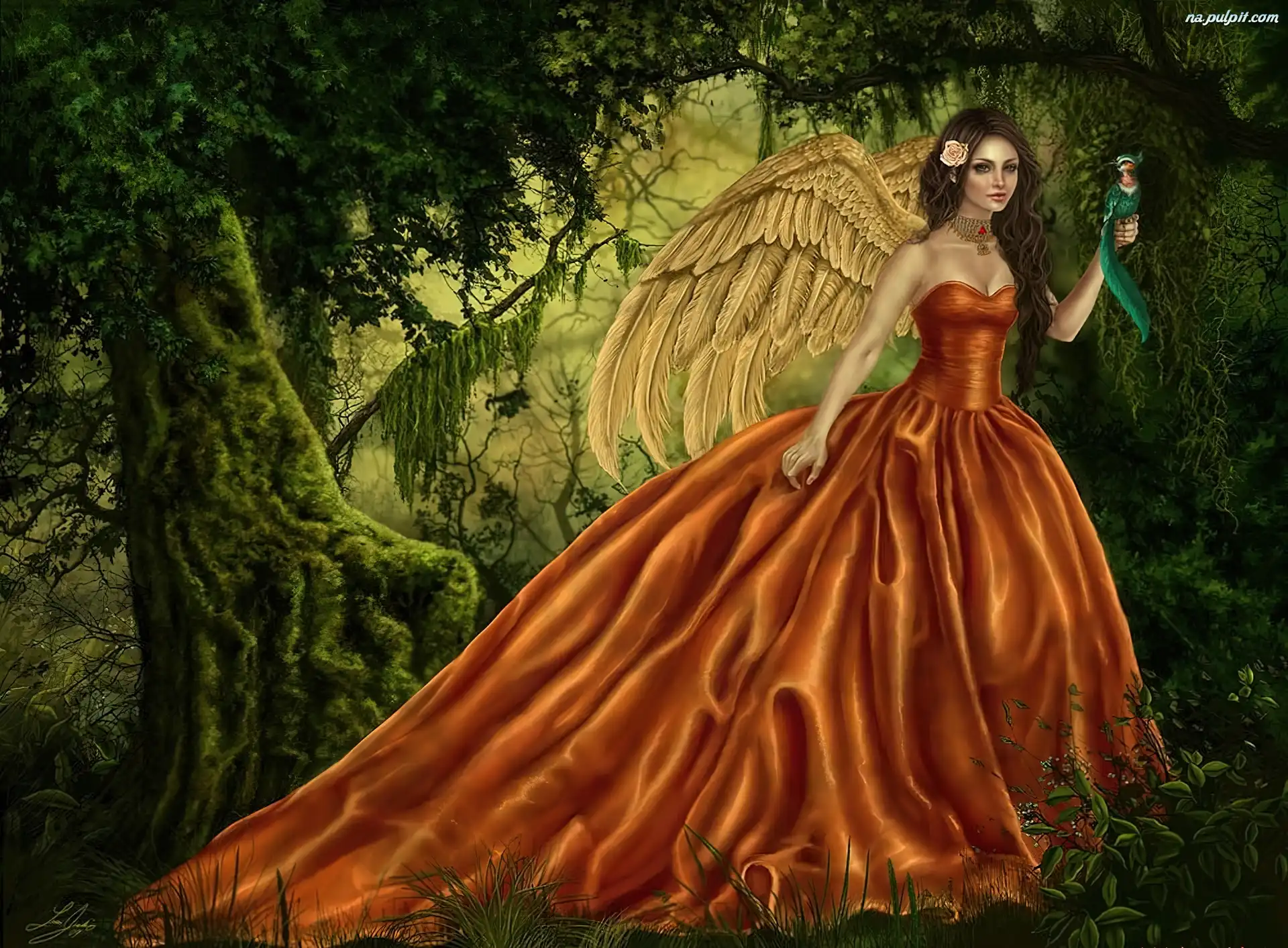 Ptak, Suknia, Kobieta, Skrzydła