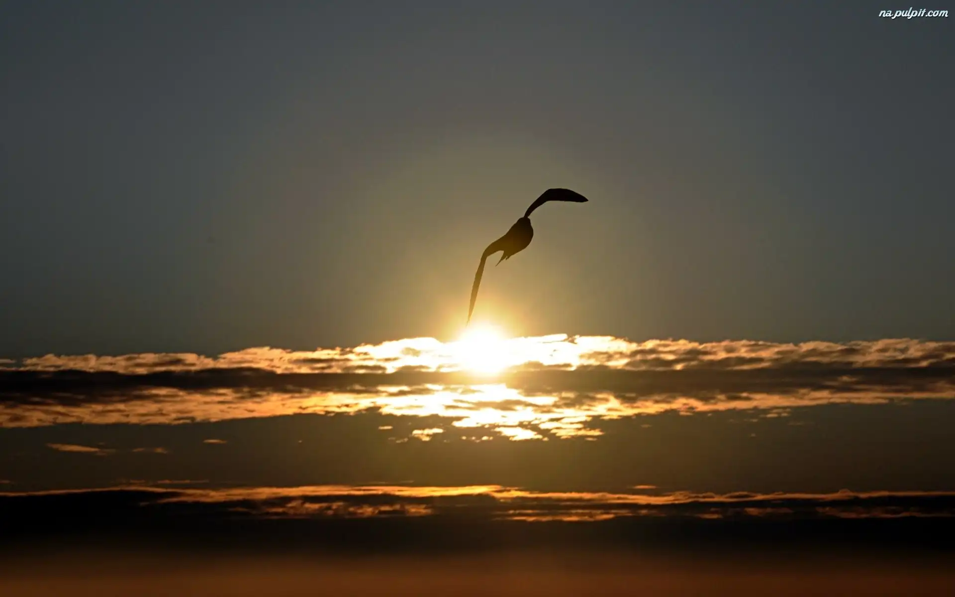 Ptak, Słońca, Zachód, Niebo Na Pulpit