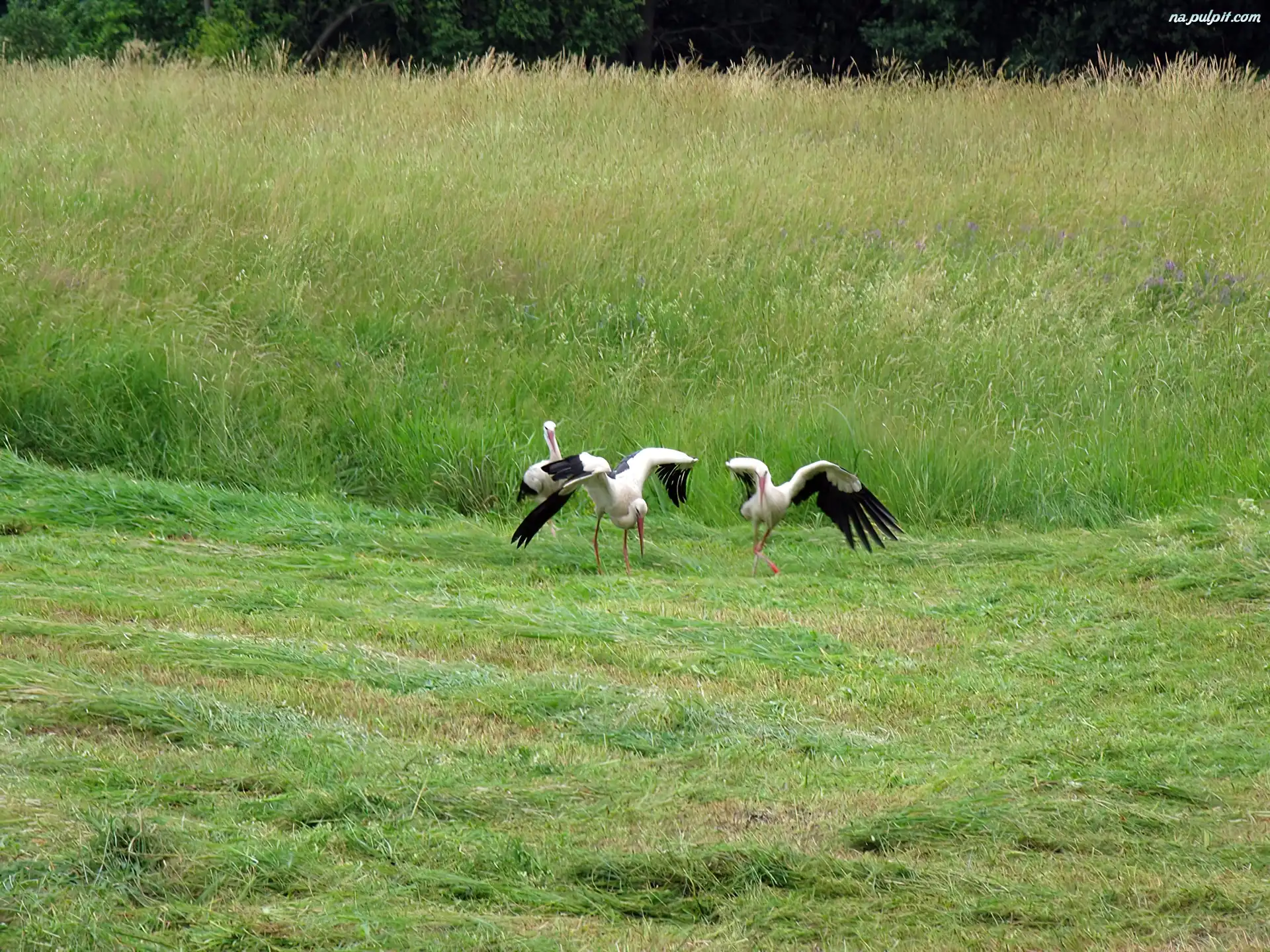 Łąka, Ptaki, Bociany Na Pulpit
