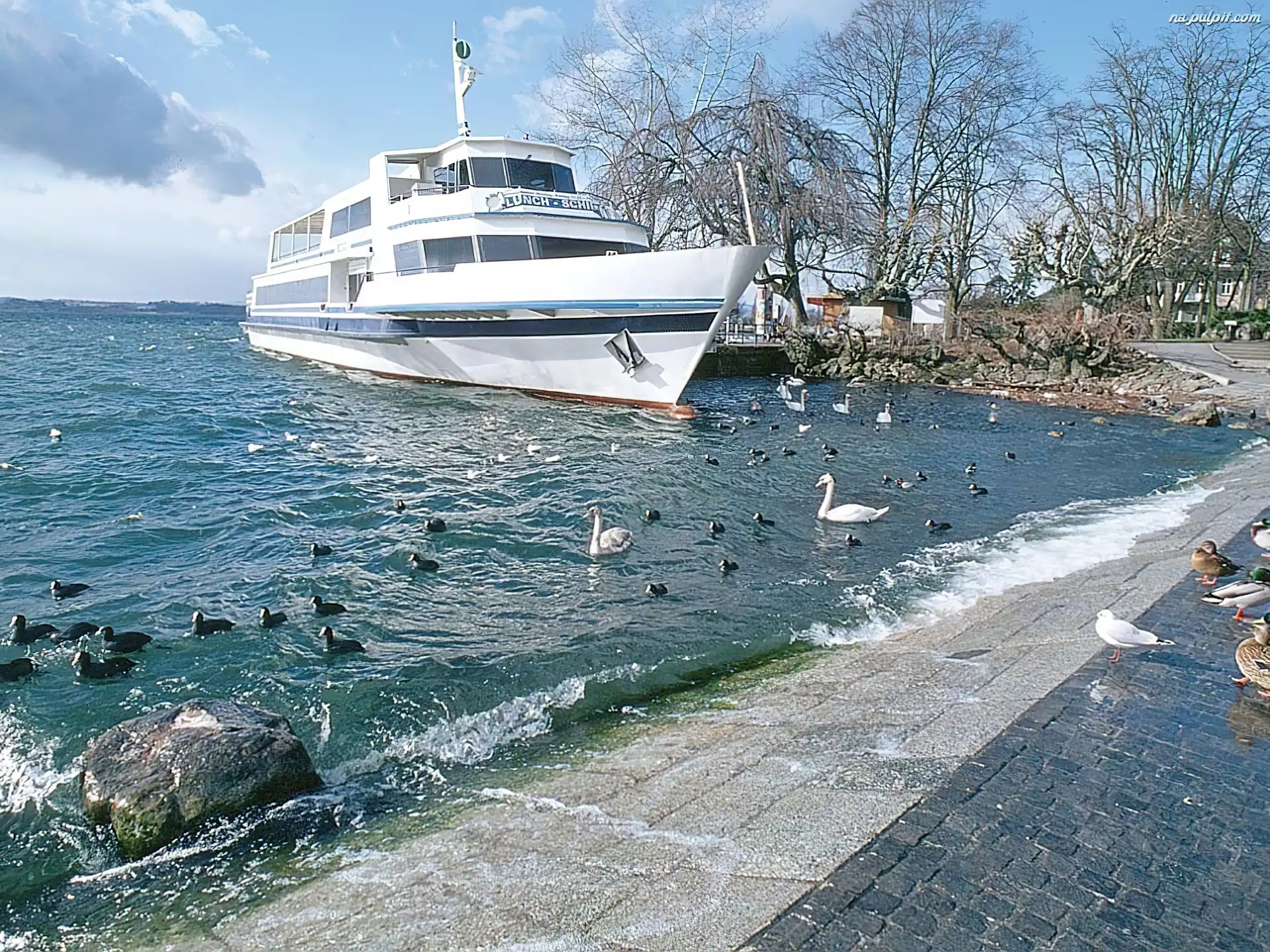 Ptaki, Jacht, Biały, Jezioro Na Pulpit