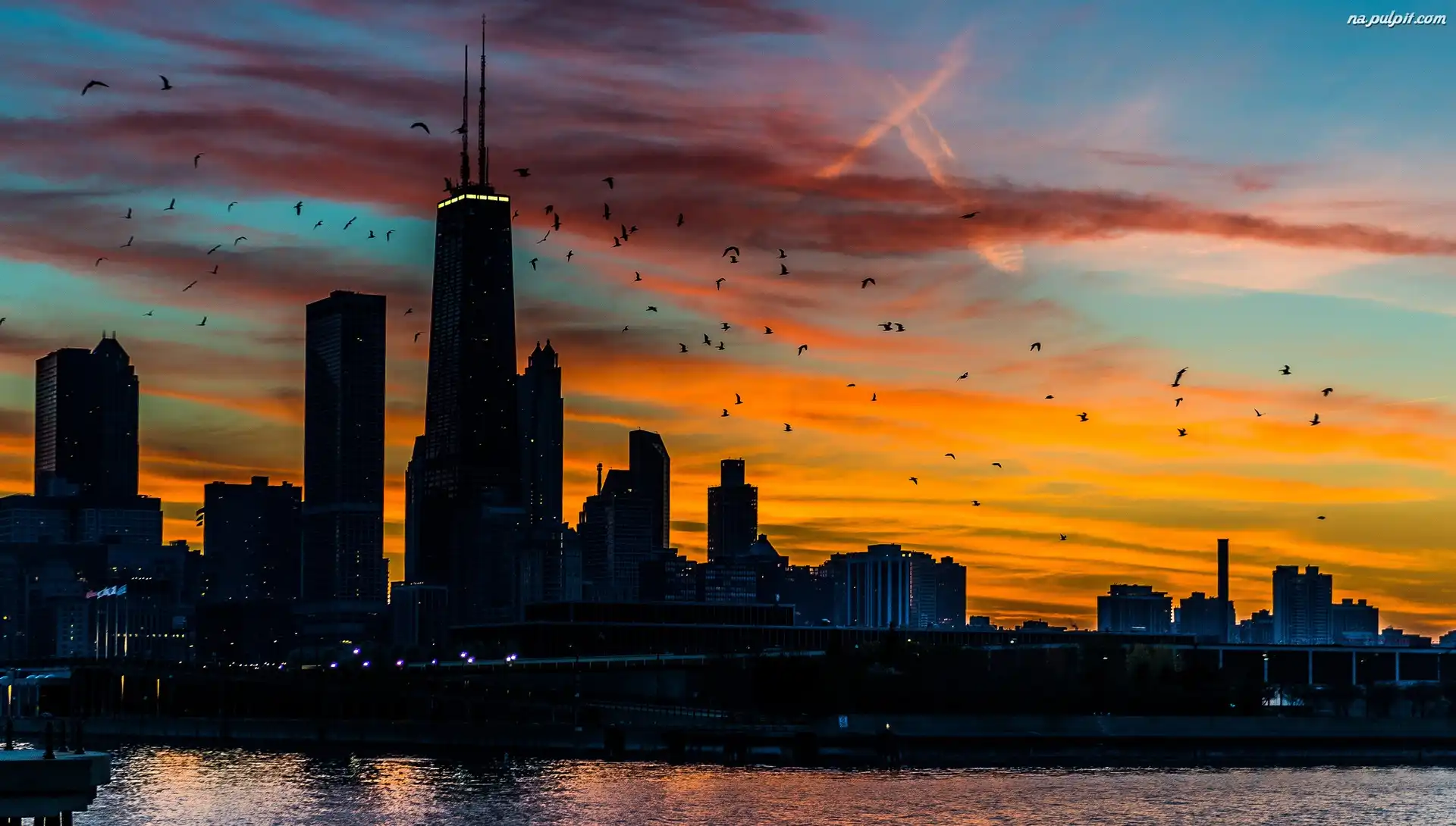 Ptaki, Zachód, Drapacze Chmur, Słońca Na Pulpit