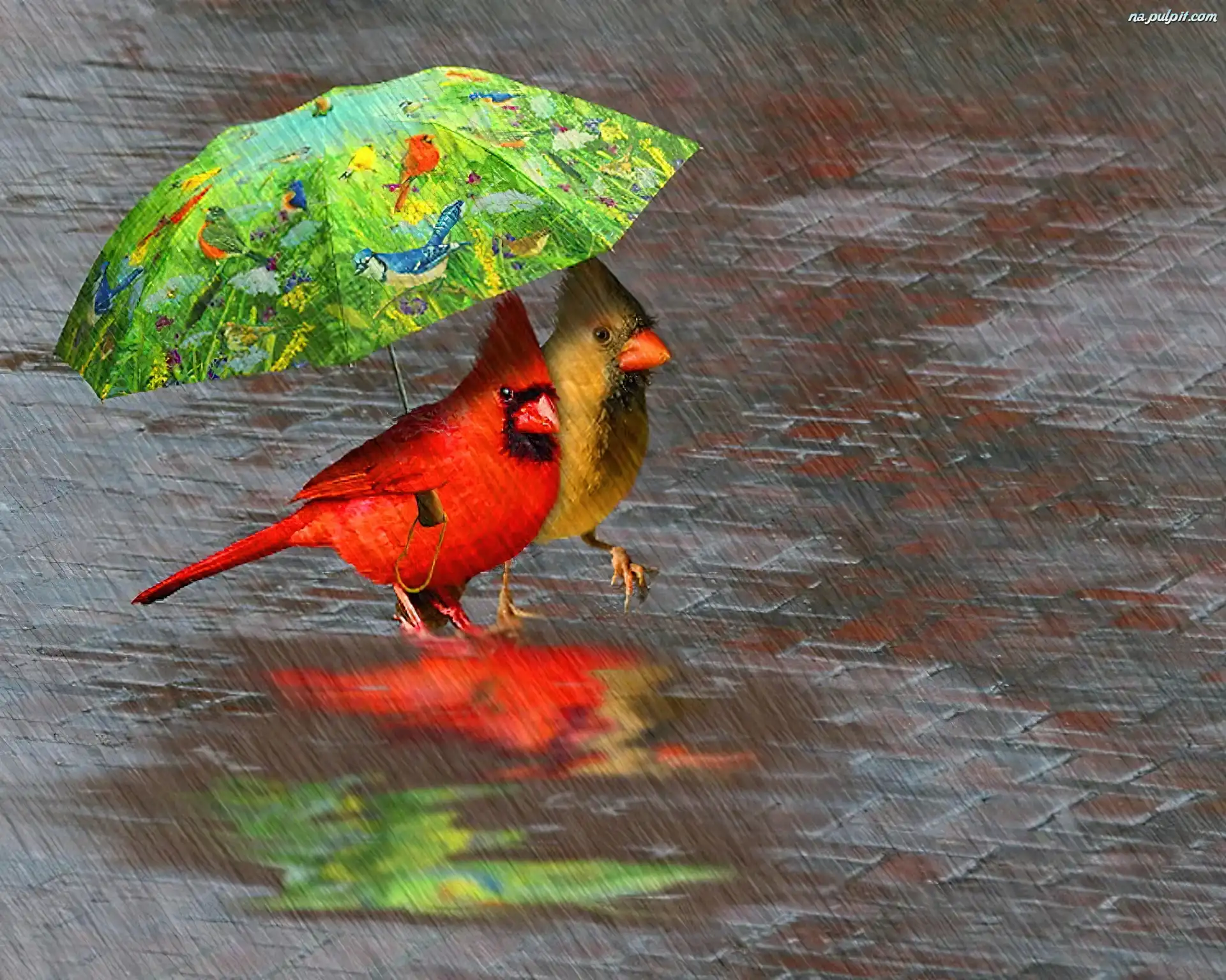 Deszcz, Ptaki, Parasol