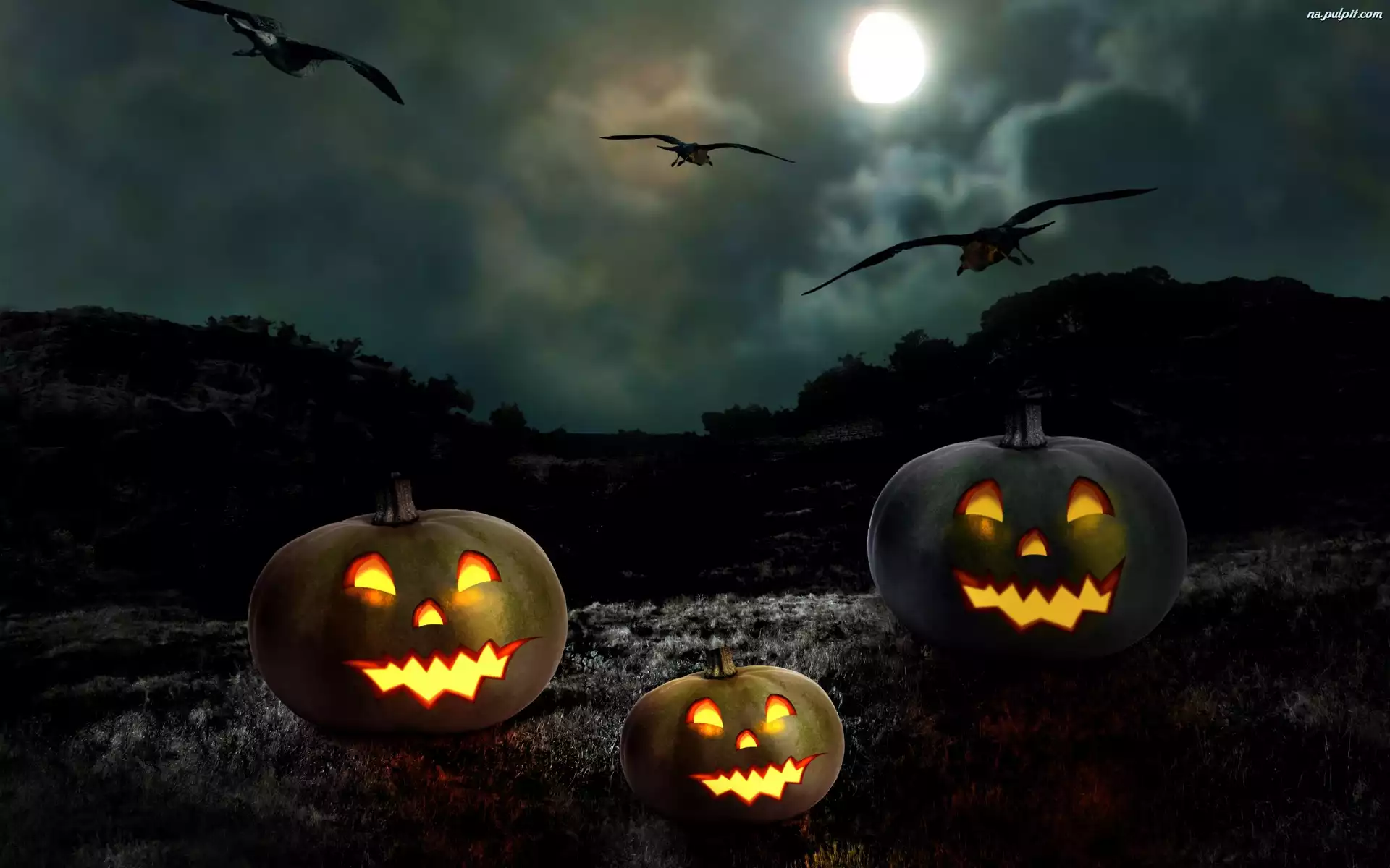 Ptaki, Noc, Halloween, Dynie