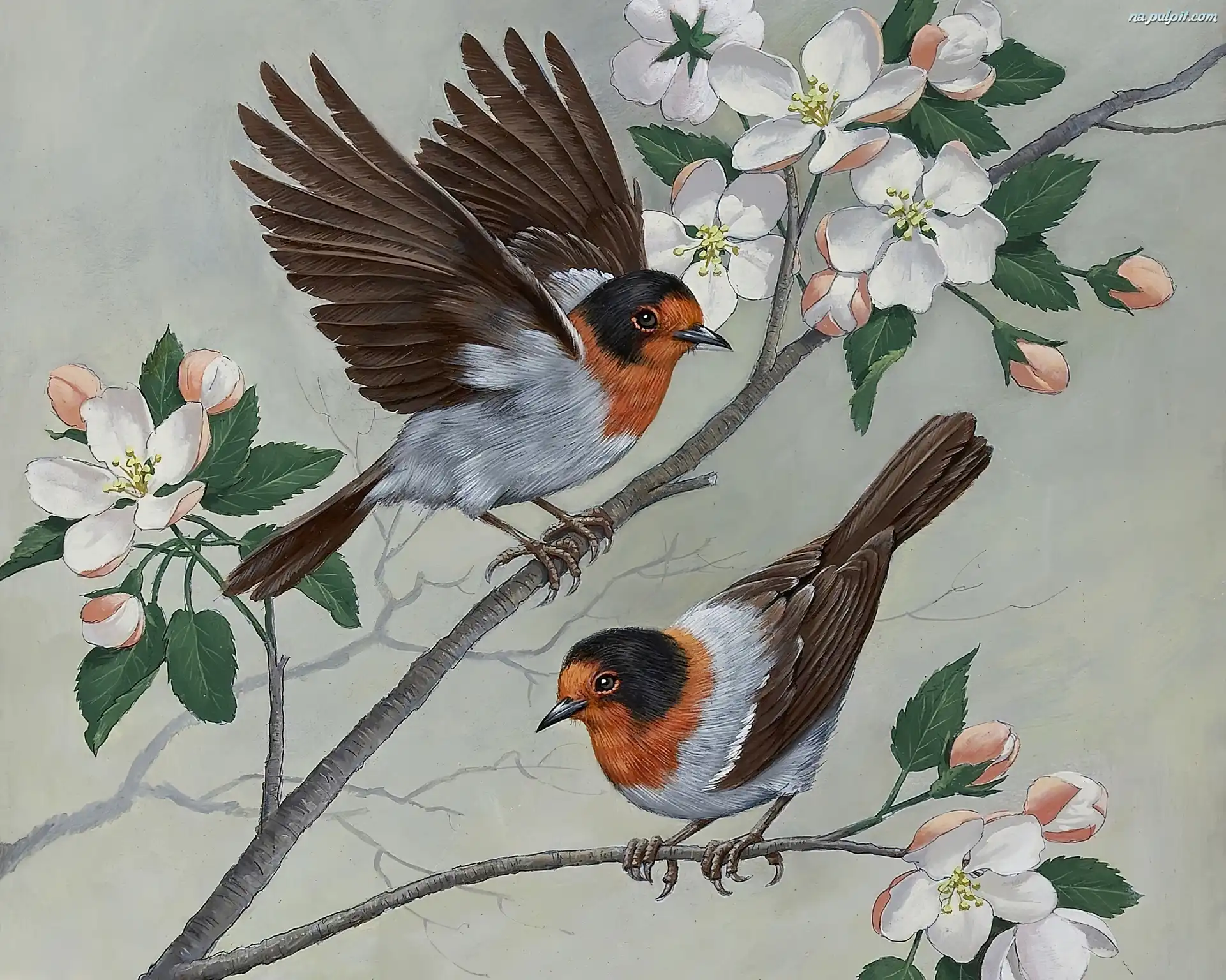 Kwiatki, Ptaki, Gałązka Na Pulpit