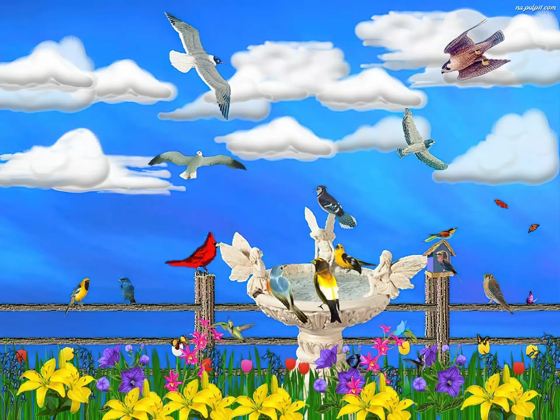 Ptaki, Kwiaty, Ogródek, Różne Na Pulpit