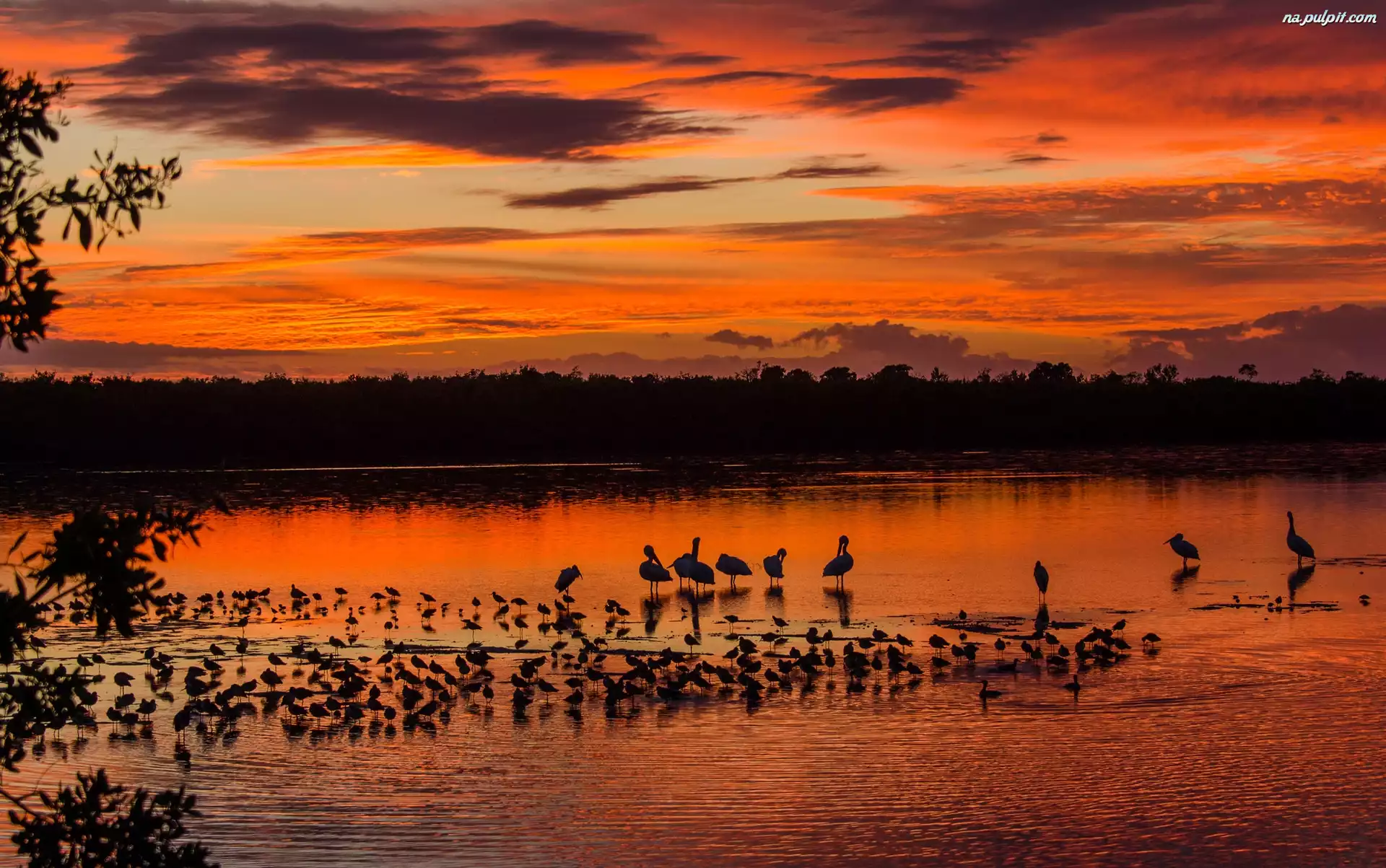 Ptaki, Chmury, Zachód Słońca Na Pulpit