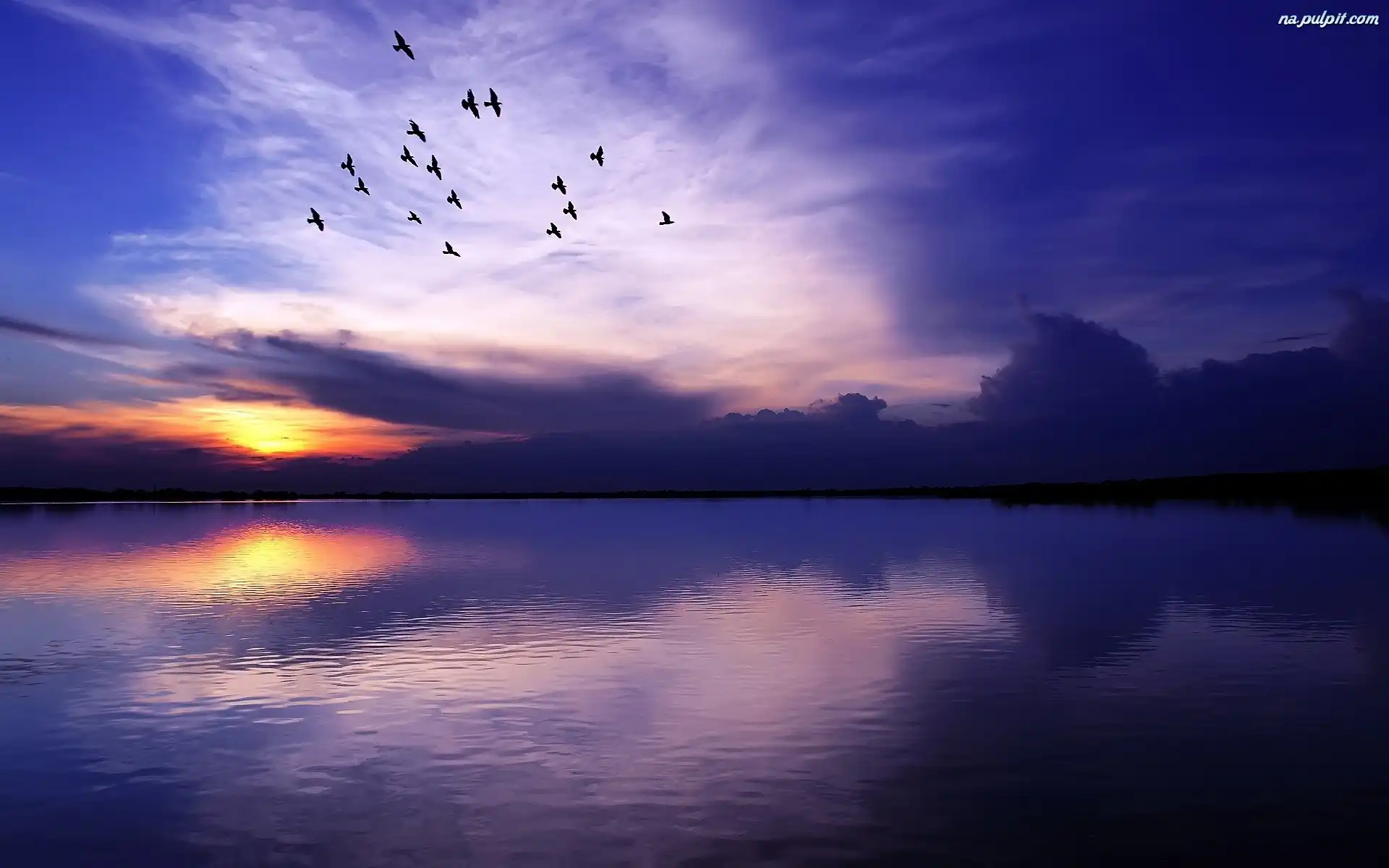 Ptaki, Słońca, Zachód, Jezioro Na Pulpit