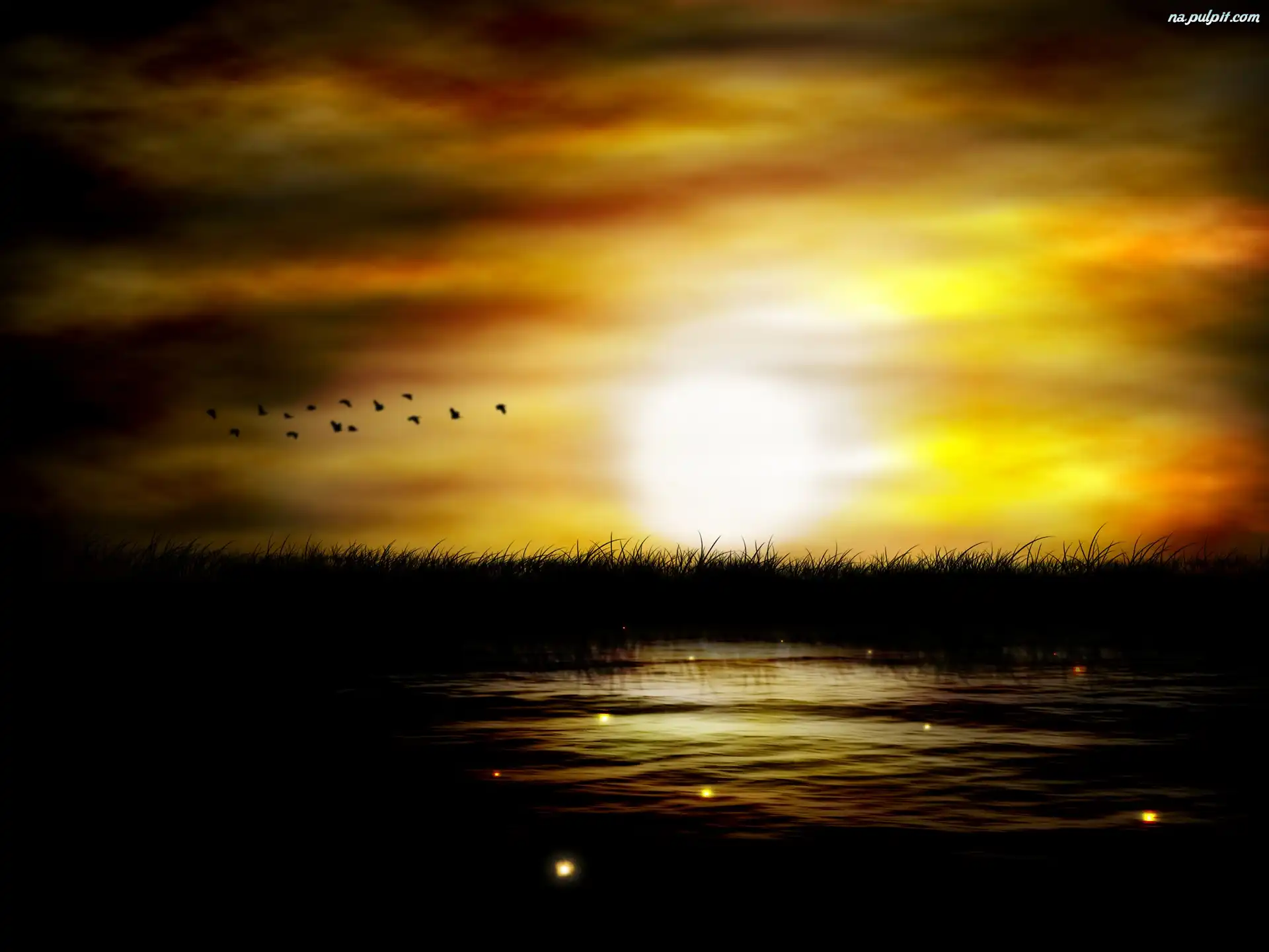 Ptaków, Jezioro, Słońca, Zachód, Klucz Na Pulpit