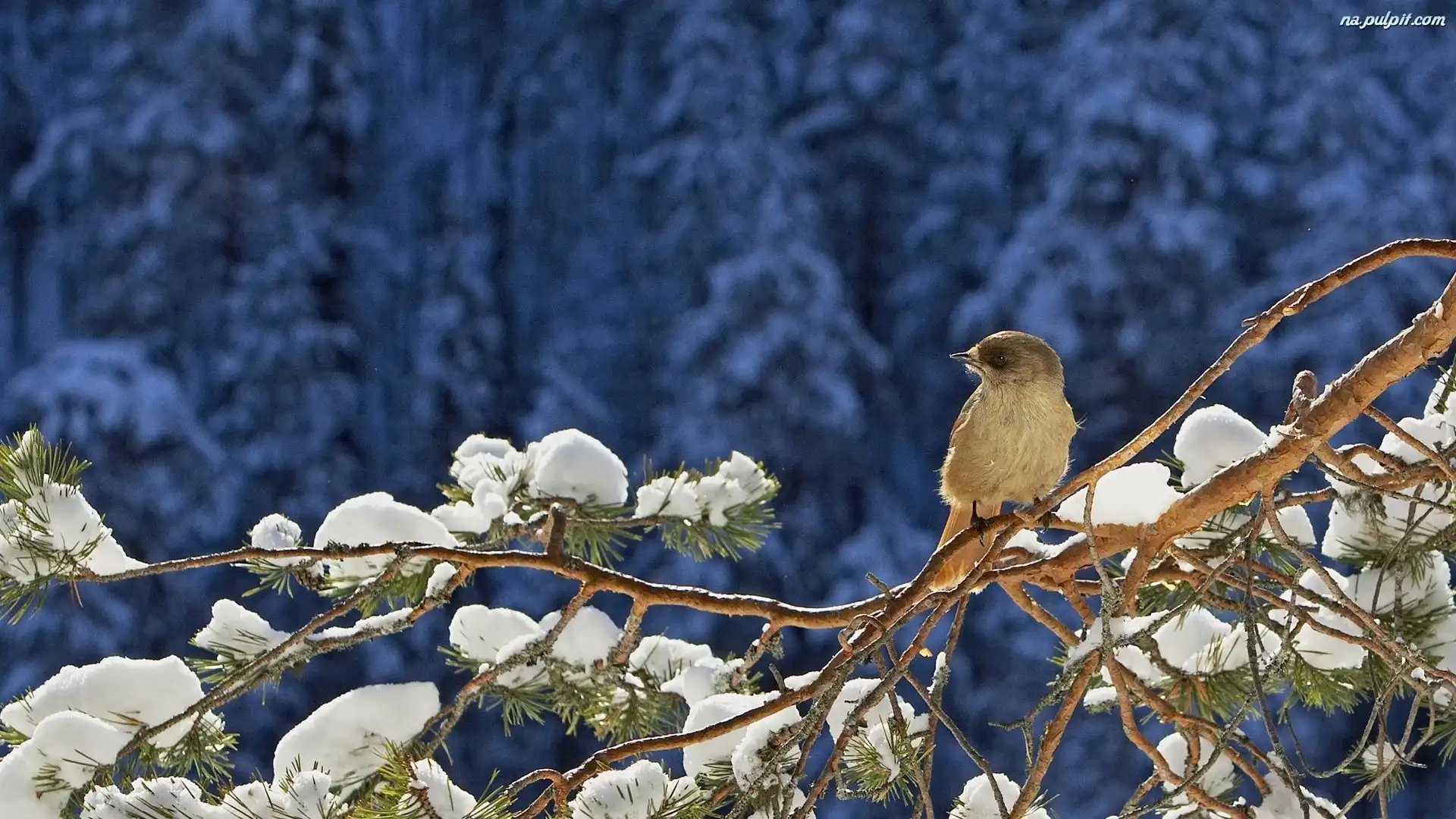 Śnieg, Gałązka, Zima, Ptaszek, Iglaka Na Pulpit