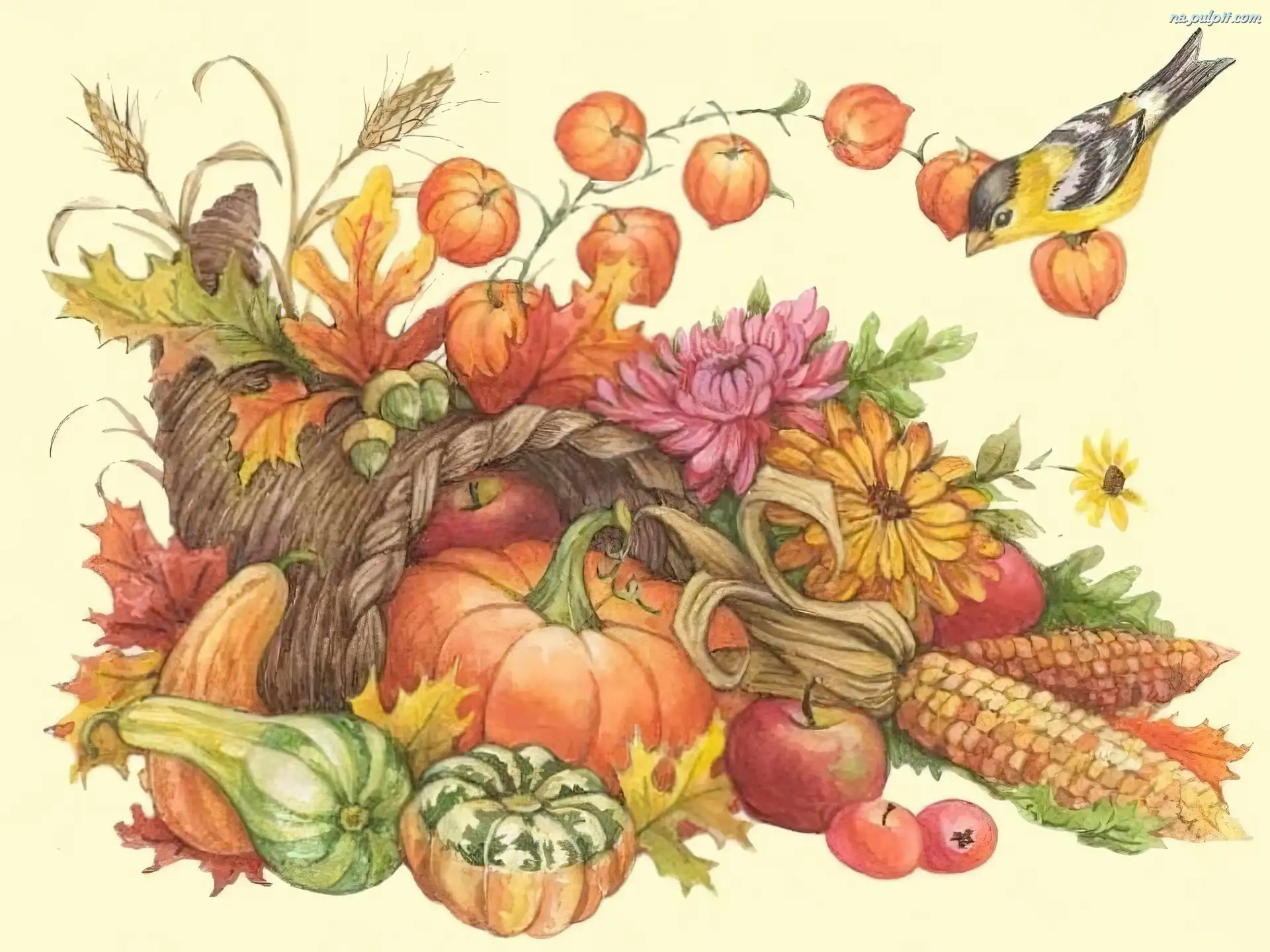 ptaszek, warzywa, Halloween, dynie Na Pulpit