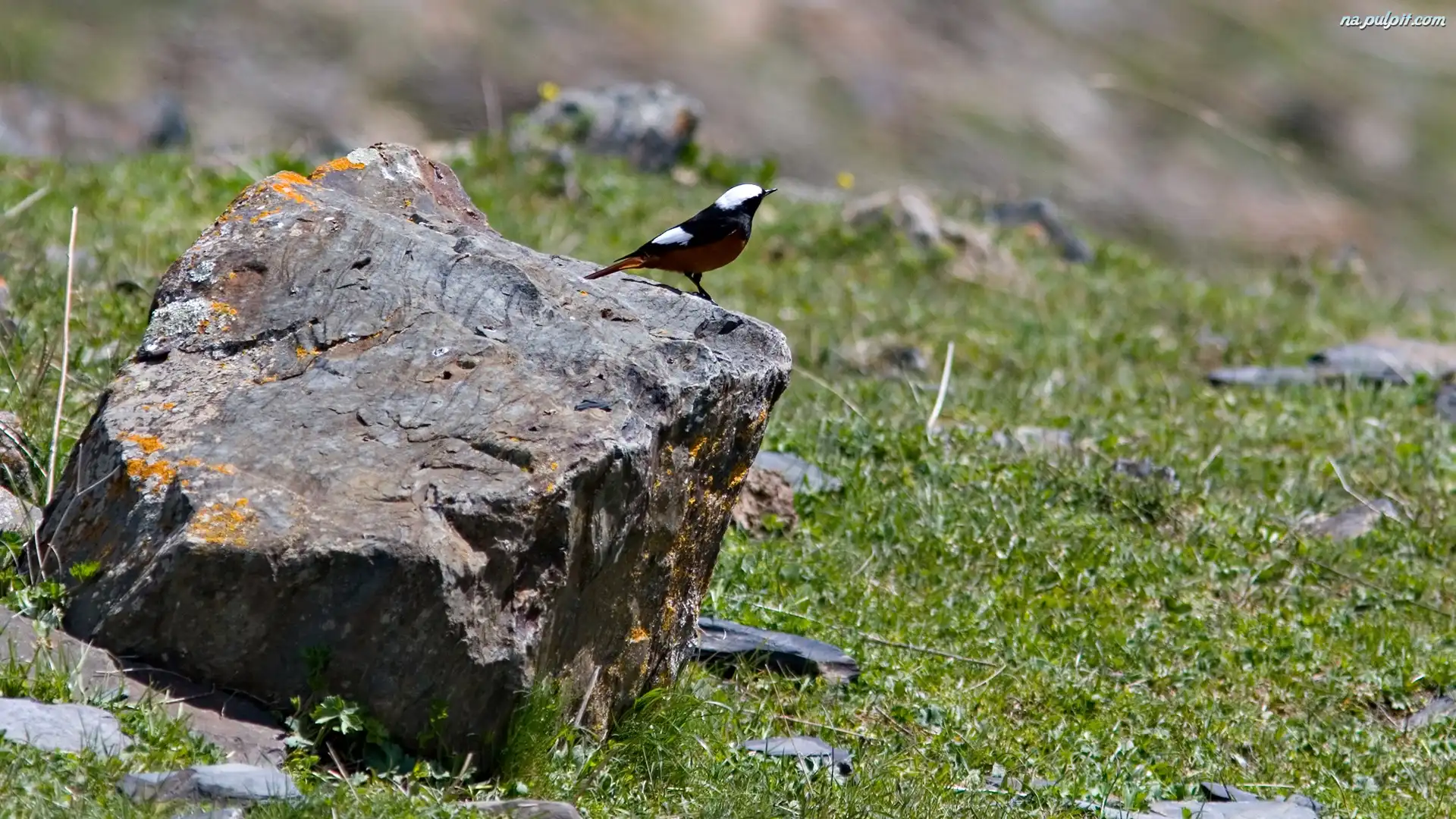 Ptaszek, Kamienie, Trawa, Mały Na Pulpit
