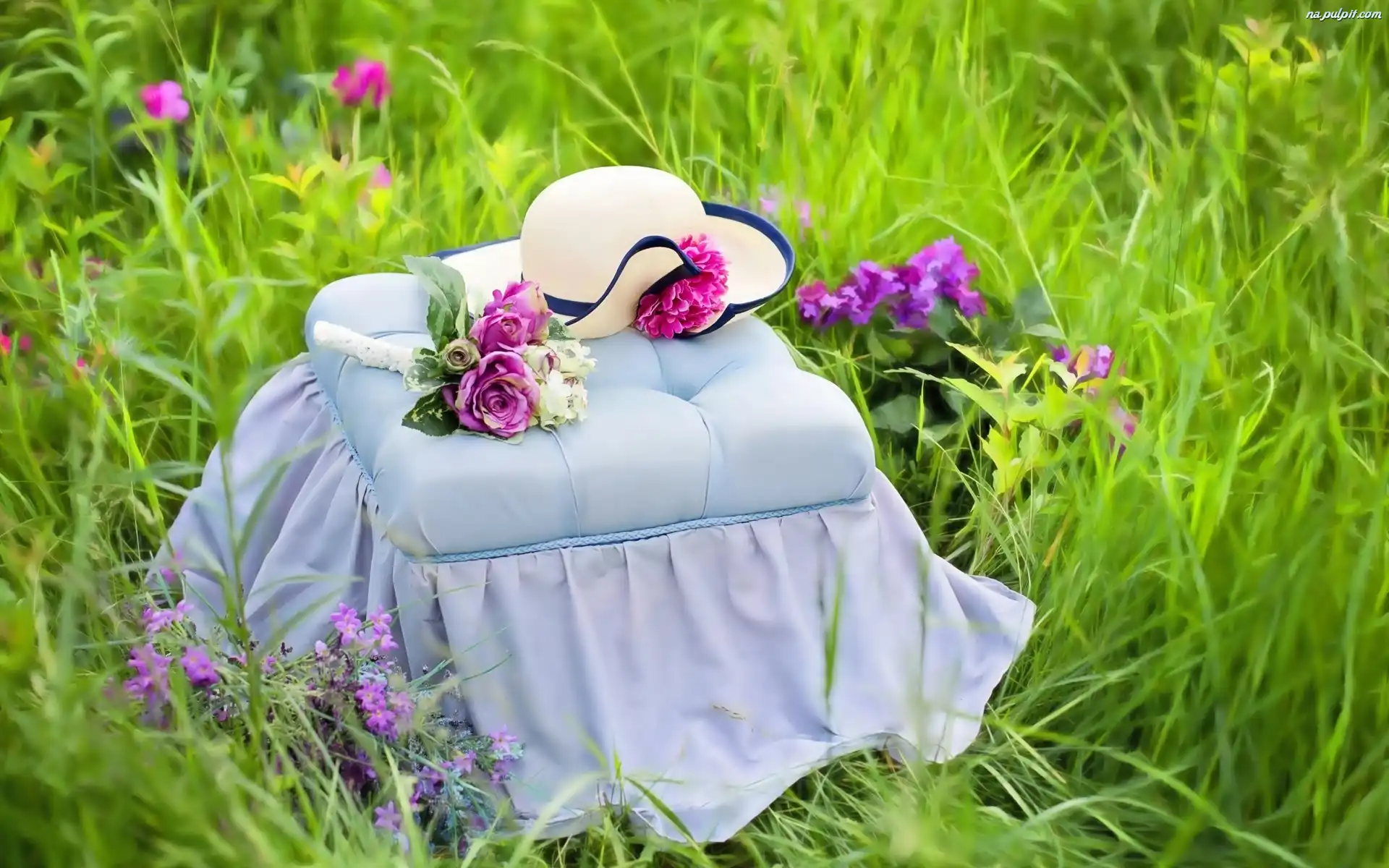 Pufa, Róż, Kapelusz, Kwiaty, Łąka, Bukiecik Na Pulpit