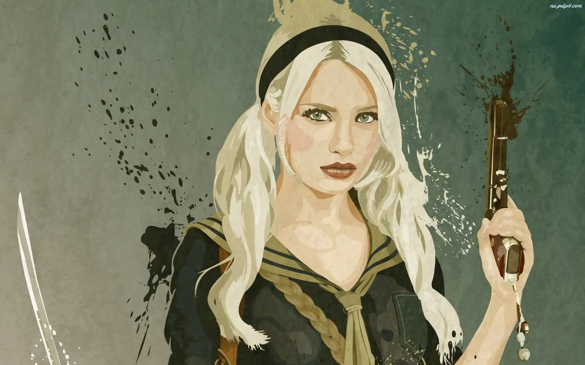 Rysunek, Aktorka, Pistolet, Film, Emily Browning, Dziewczyna, Sucker Punch Na Pulpit