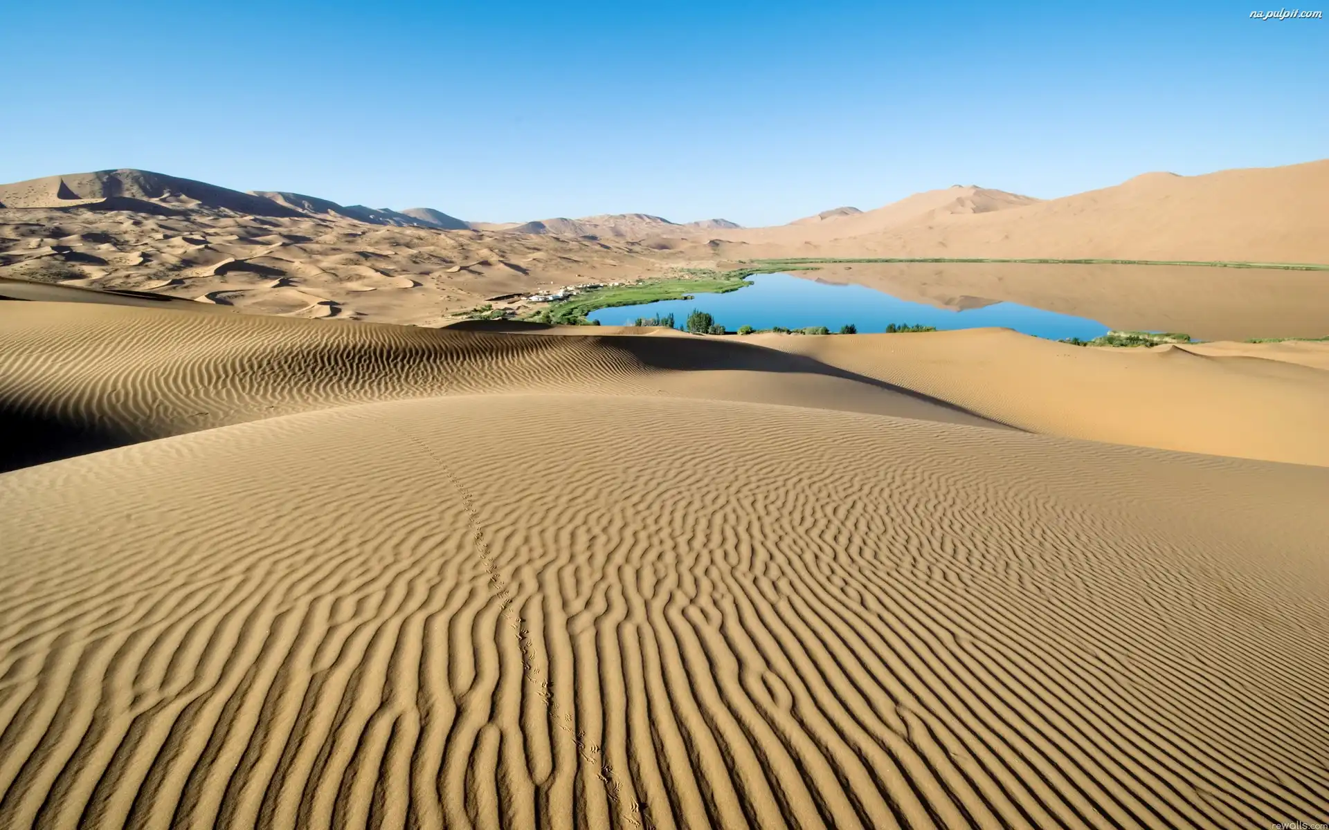 Jezioro, Pustynia, Wydmy Na Pulpit